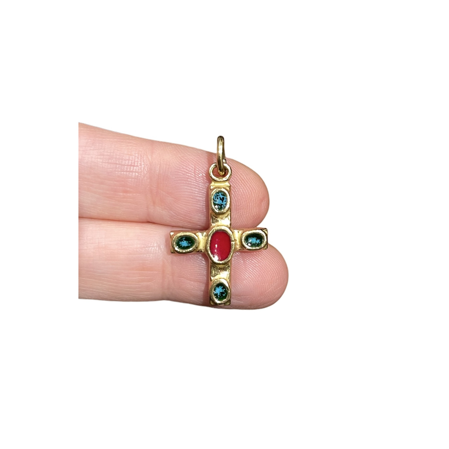 Gilded bronze and enamel cross.