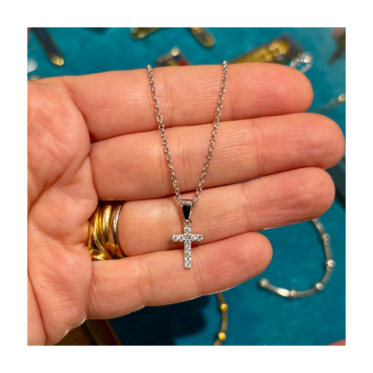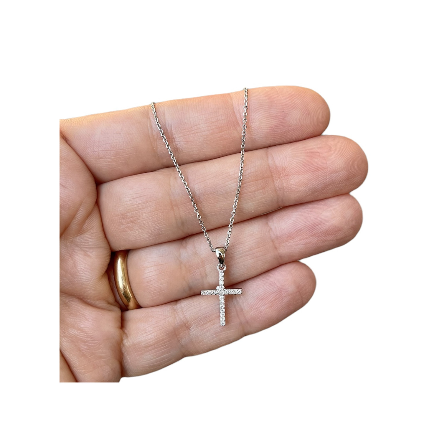 Chain with cross in 925 silver and embedded zircons.