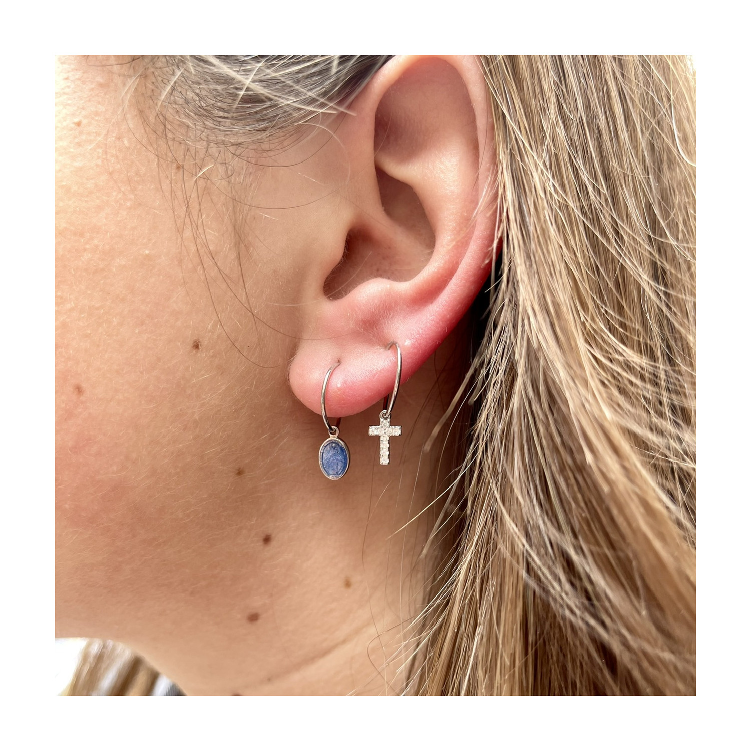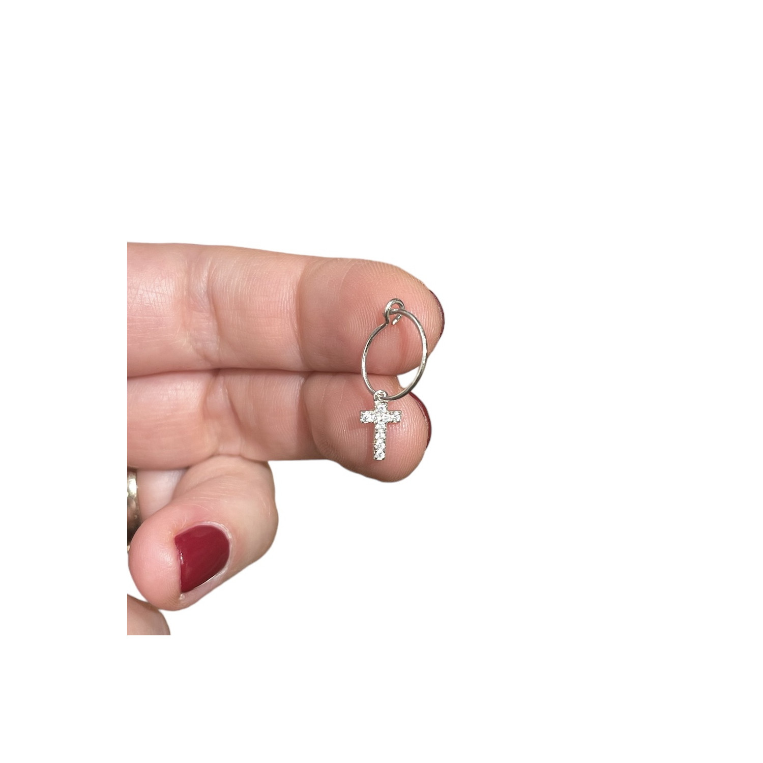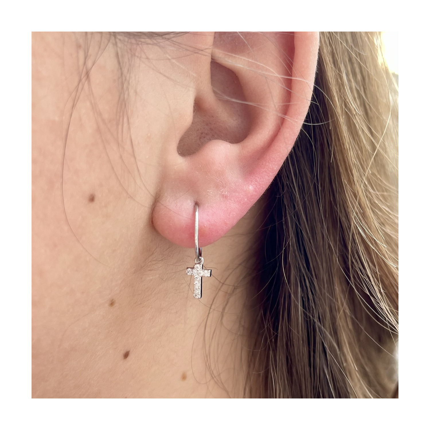 Hoop earrings with cross in rhodium-plated 925 silver with zircons.