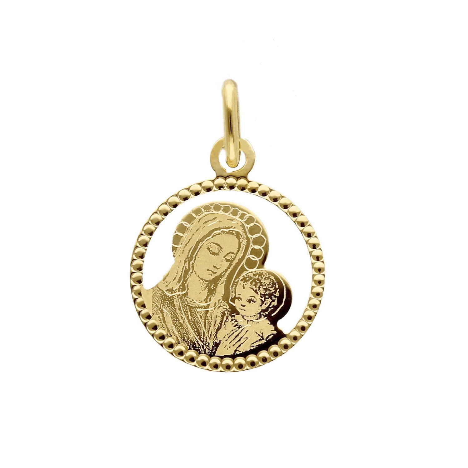 Holy Mary with child medal in 18k gold, diameter 15 mm.