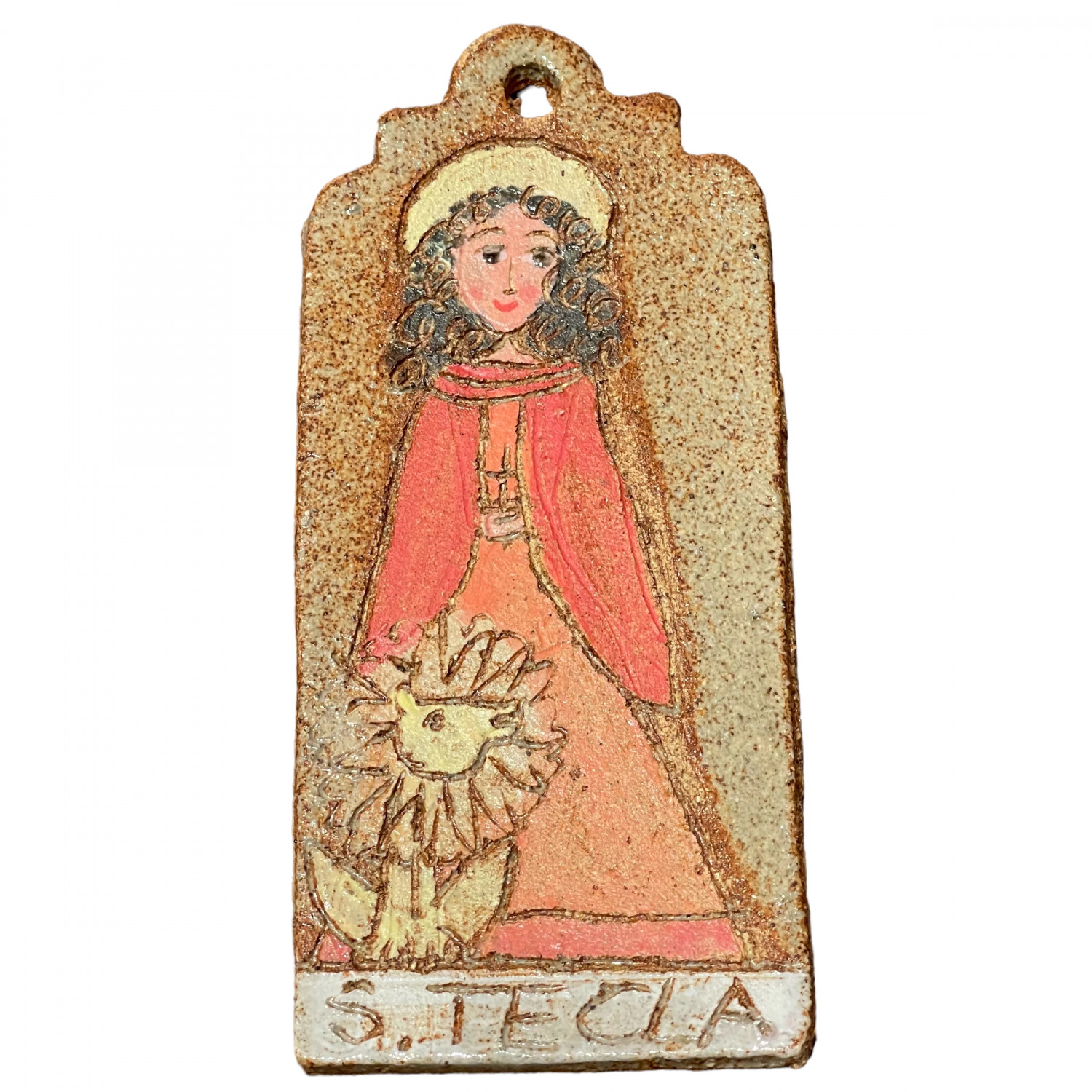 Santa Tecla, holy stoneware to hang.