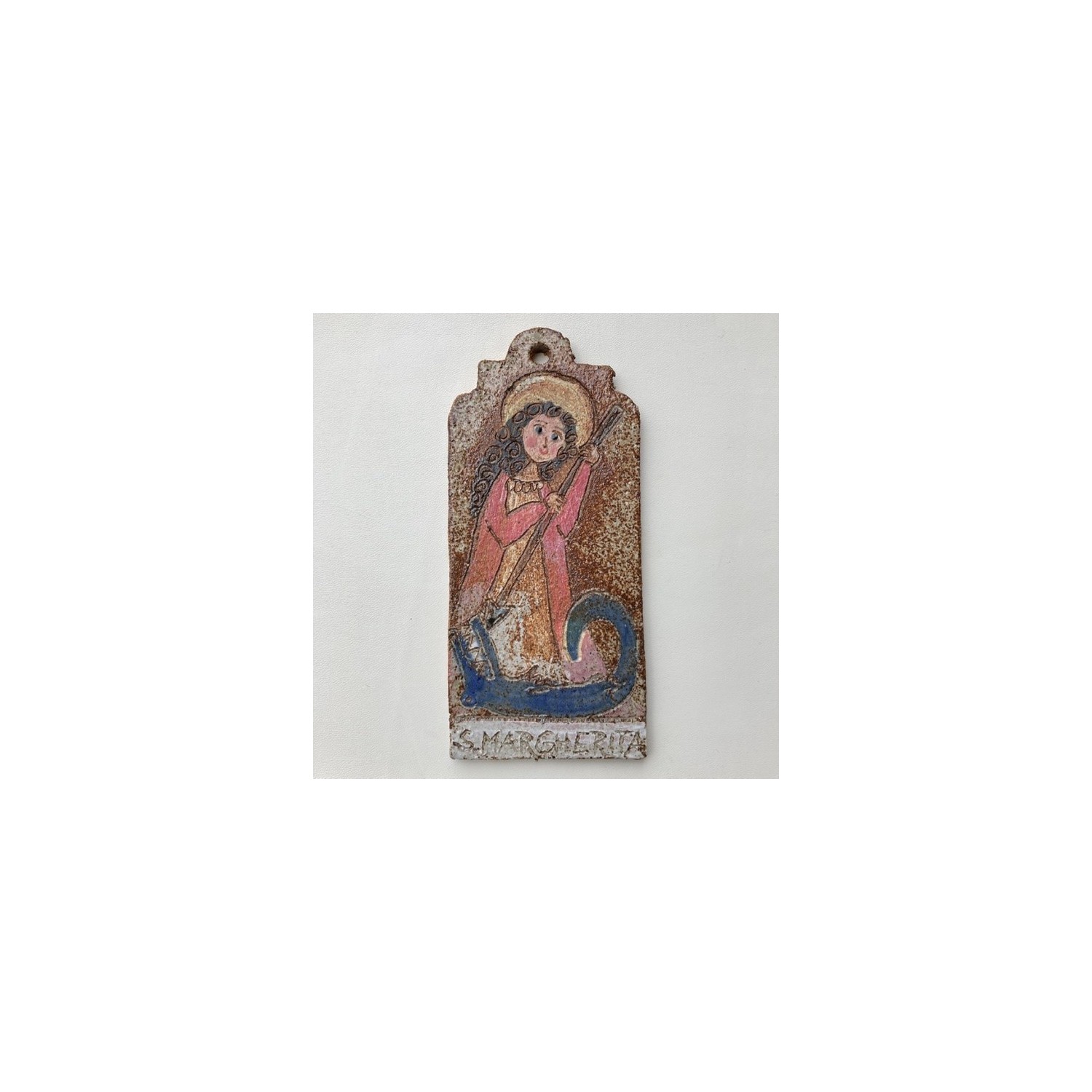 Santa Margherita, small handmade stoneware holy card to hang. Exclusive design by our ceramist Tania; For over 20 years, Tania has been creating special handmade objects for us with her own unique style. Each creation is a unique piece, created by Tania exclusively for our workshop and for our online shop; thanks to the unmistakable style of Tania and her sensitivity, these works meet more and more the satisfaction of our loyal customers.