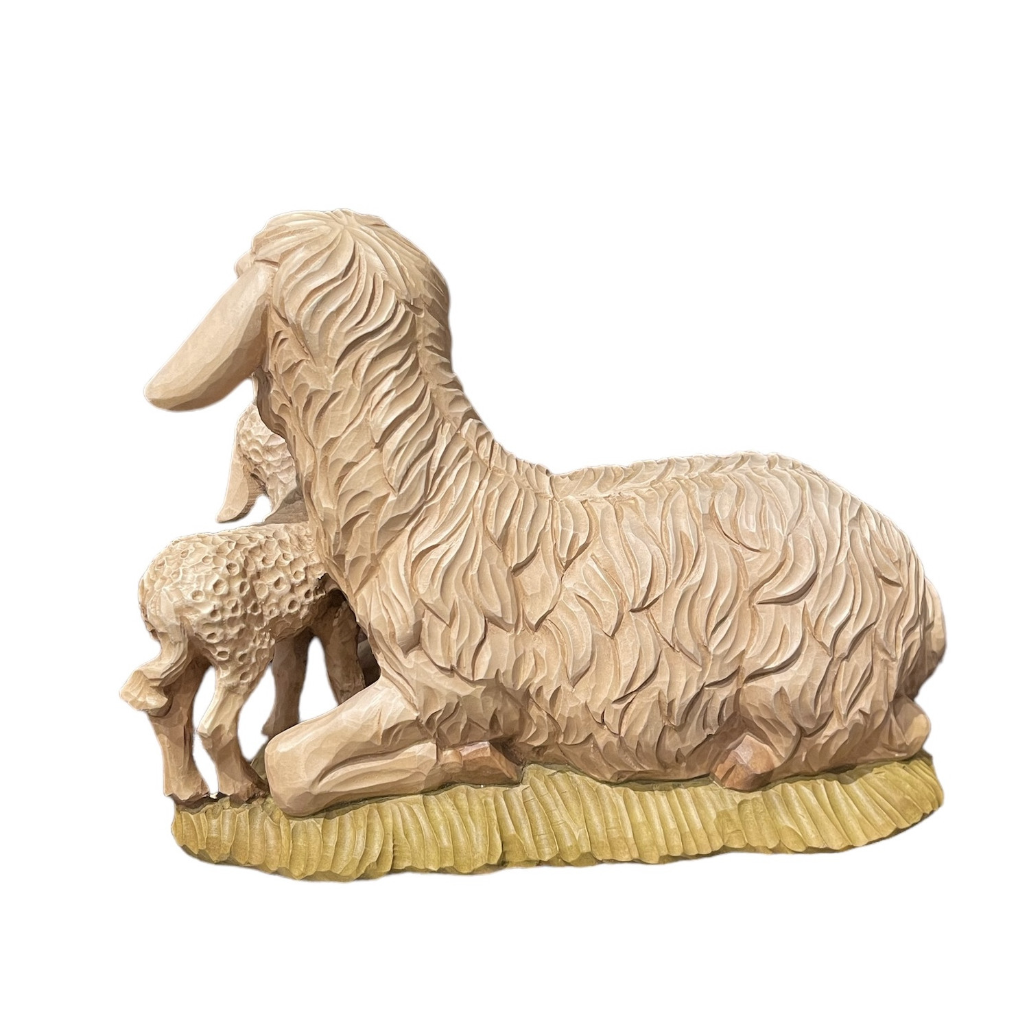 Wooden sheep with lamb for ANRI nativity scene, Bacher model, 50 cm scale.