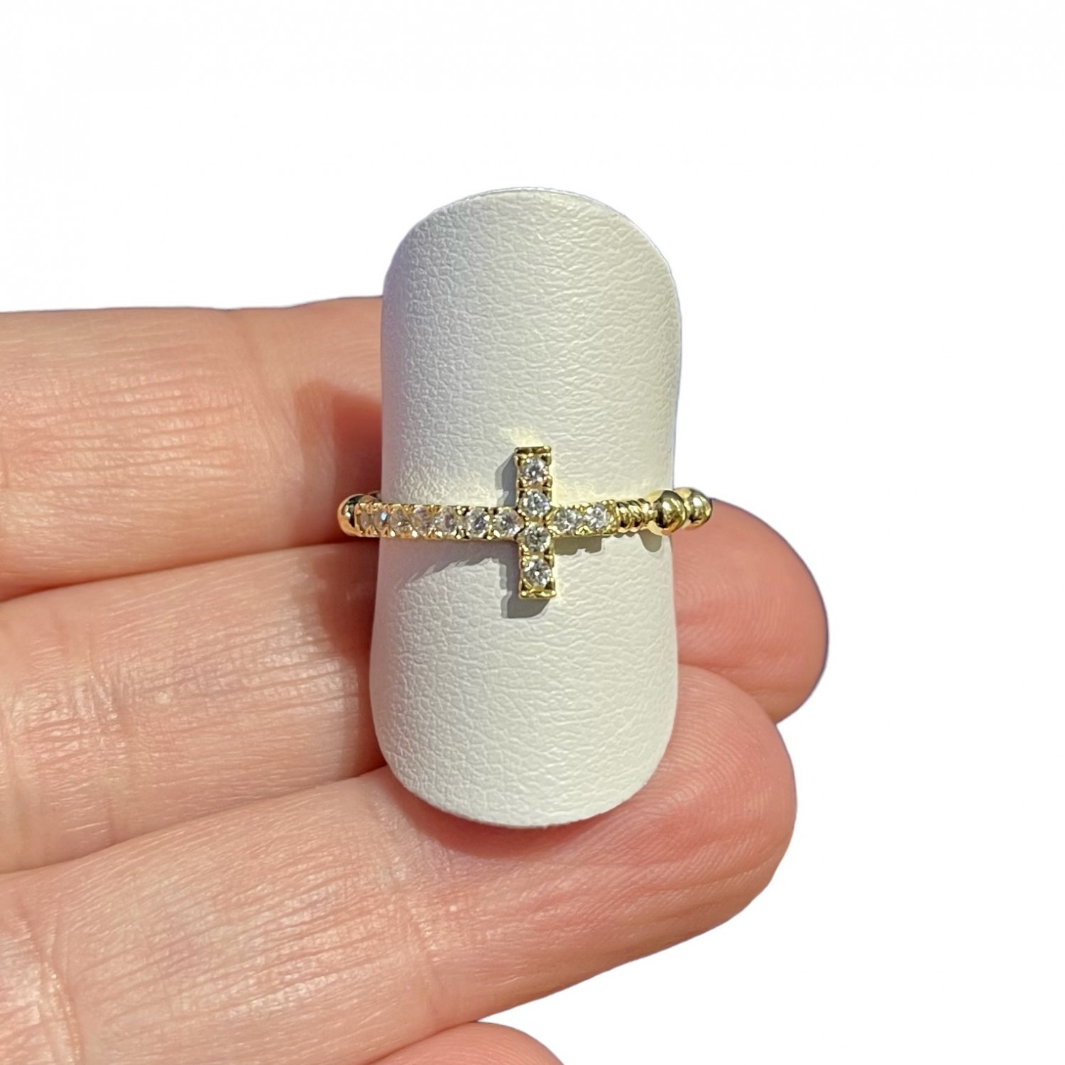 Anello rosario Croce zirconi dorato