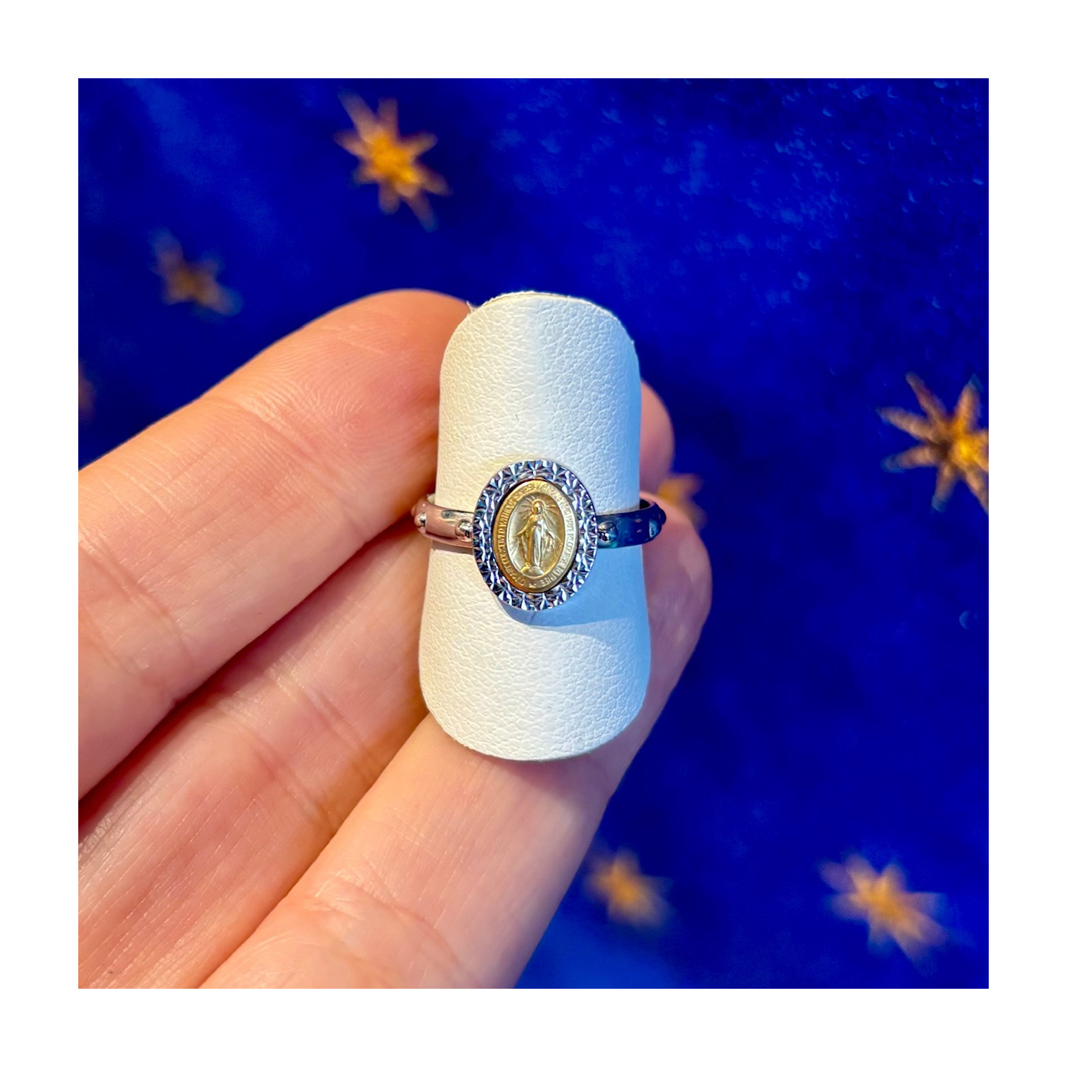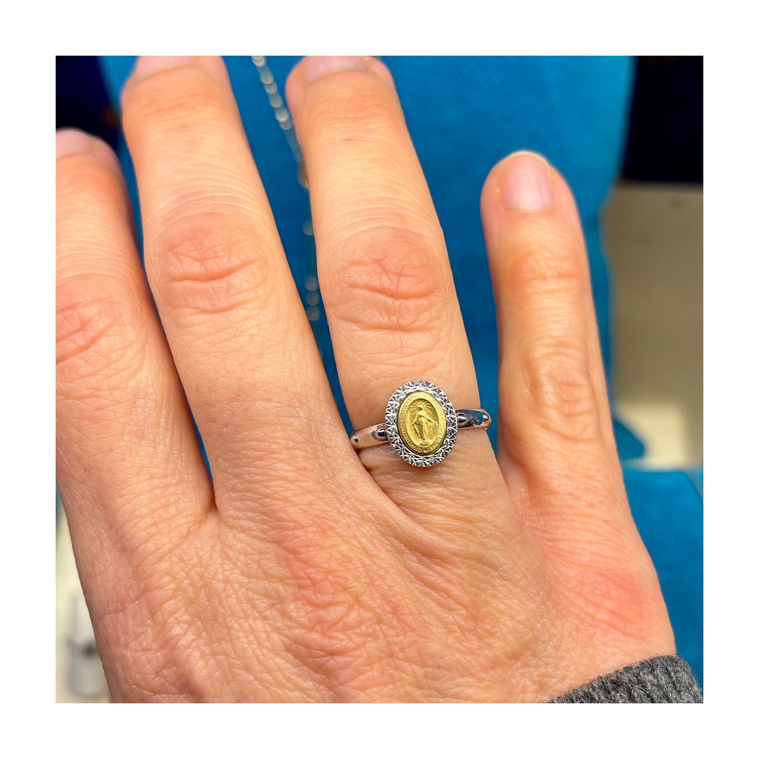 Anello rosario in argento 925 con Medaglia Miracolosa.