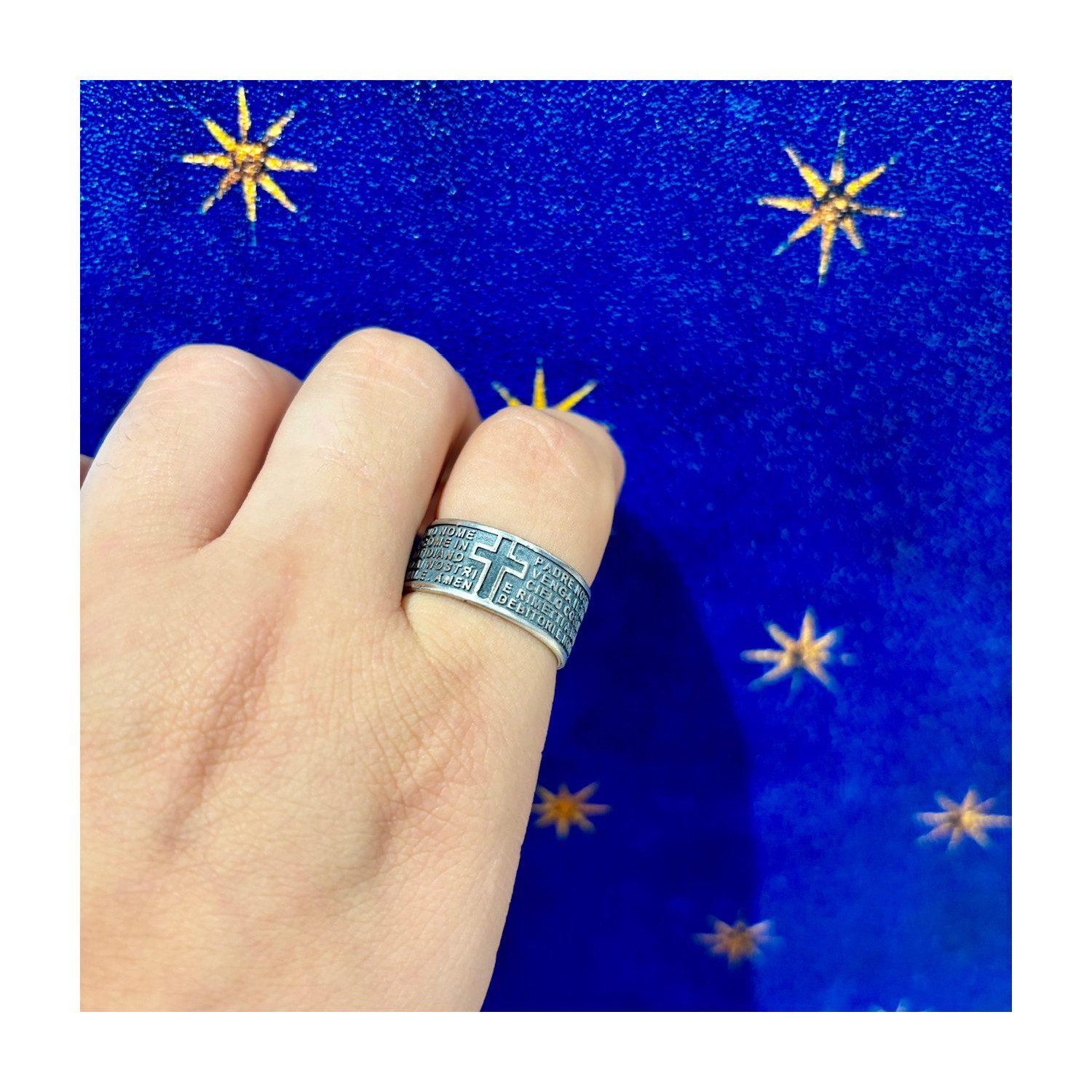 Anello in argento brunito con preghiera padre nostro.