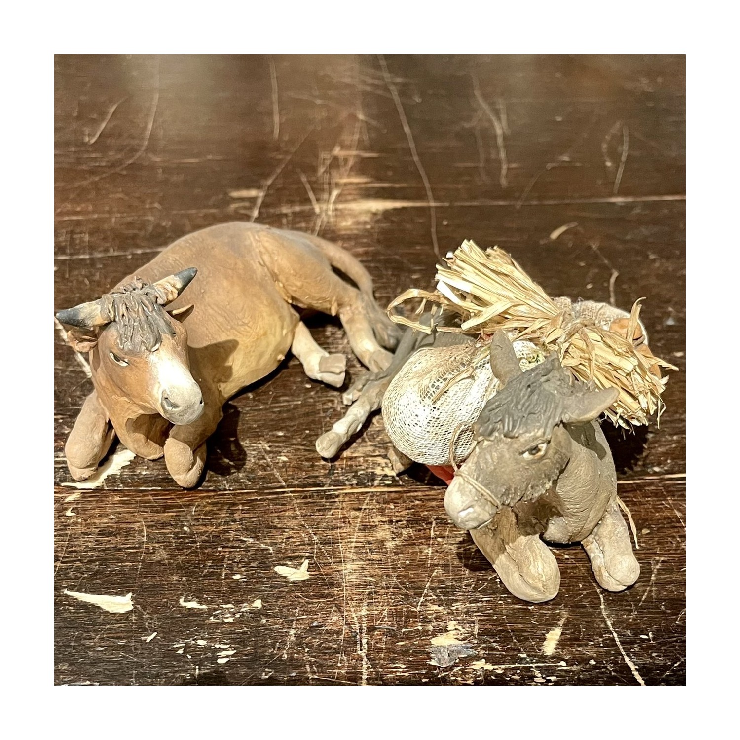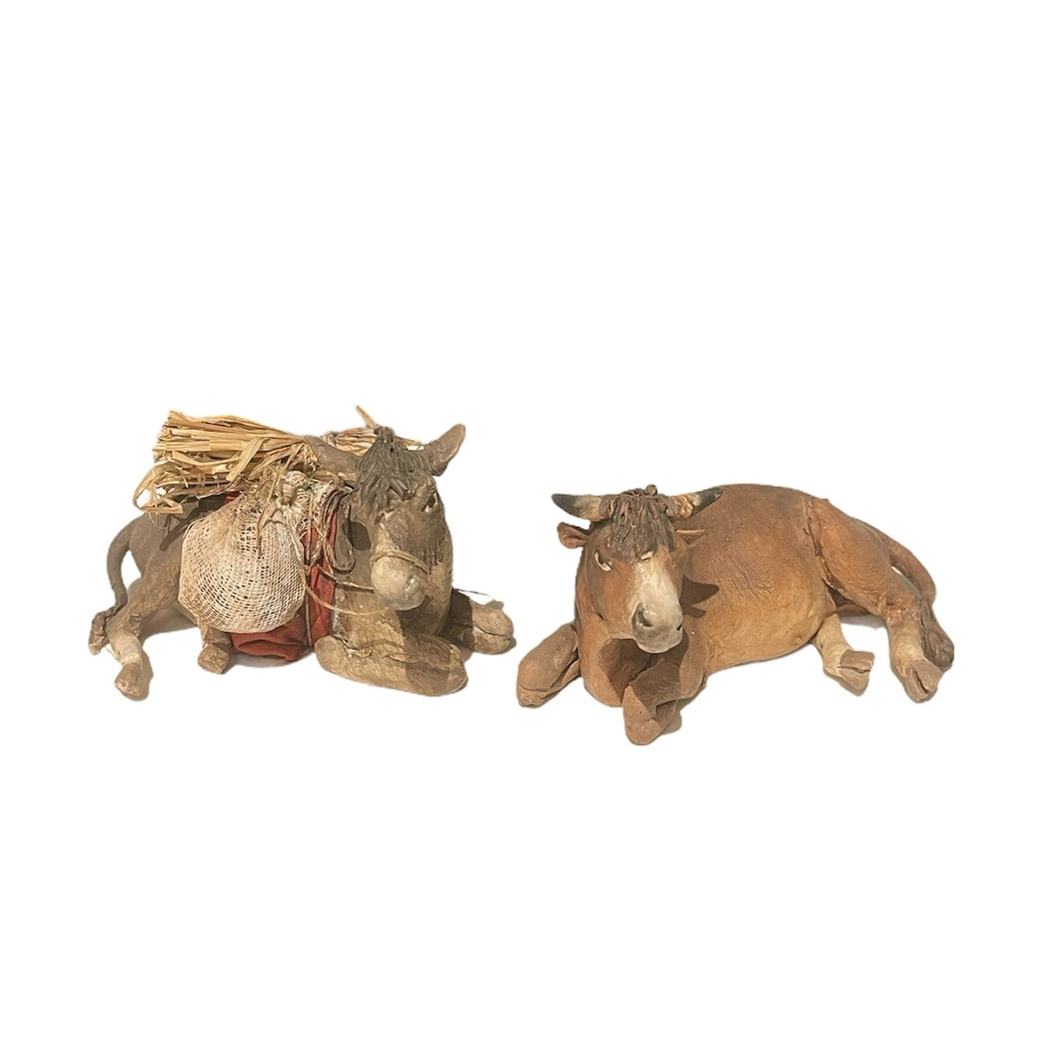 Presepe in terracotta vestita con abiti in tessuto completamente fatto a mano.