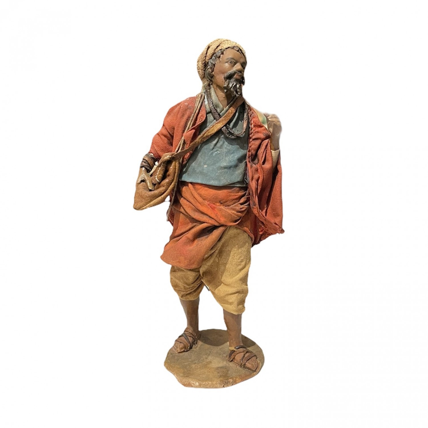 Presepe in terracotta vestita con abiti in tessuto completamente fatto a mano.