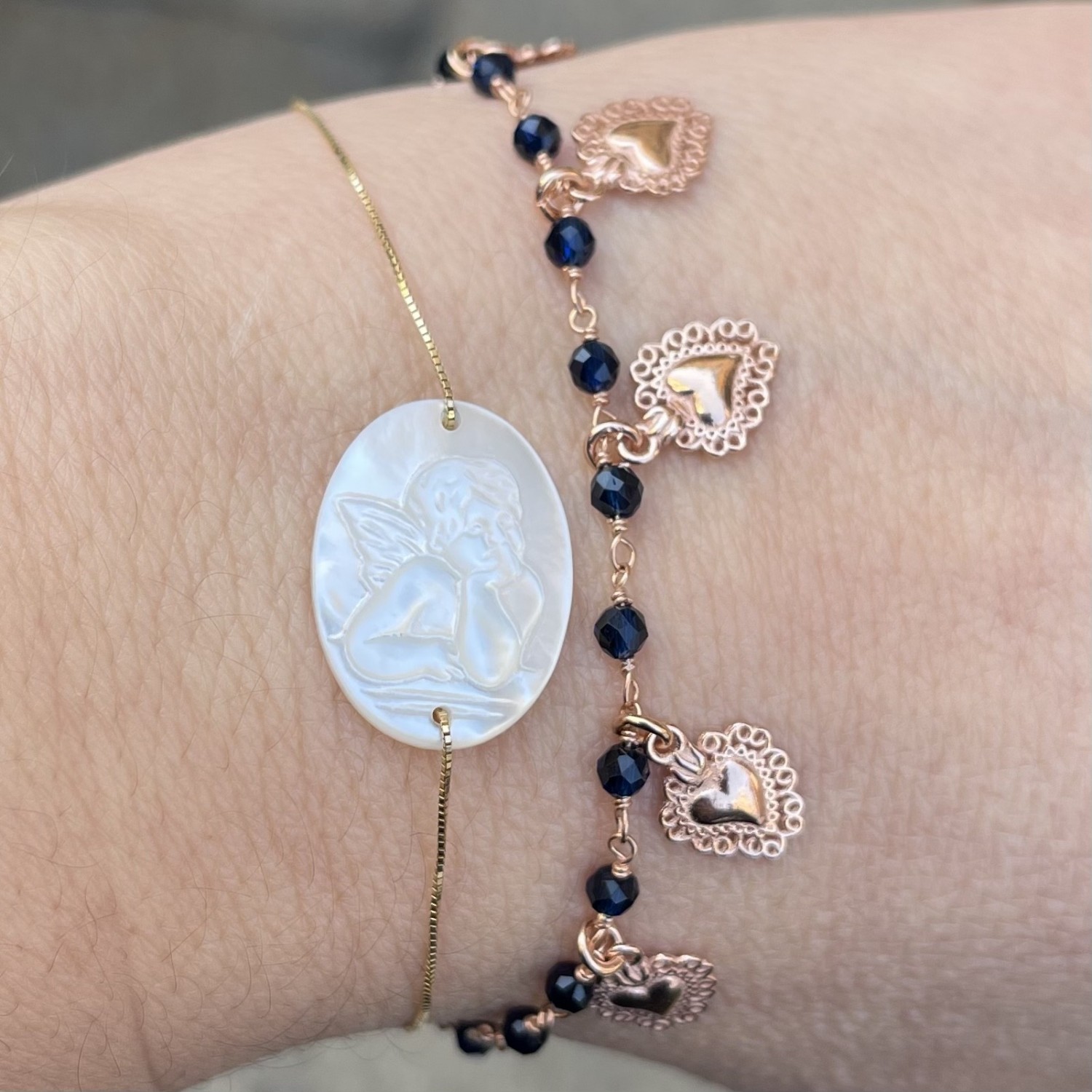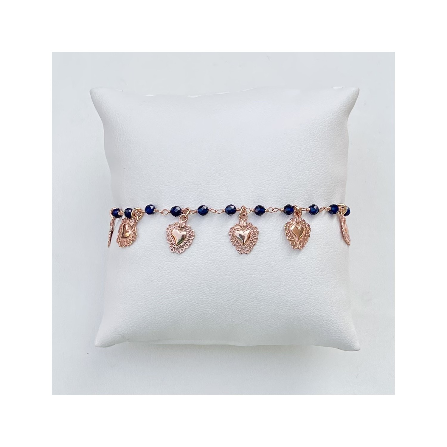Bracciale in argento 925 bagno oro rosa e zirconi blu.