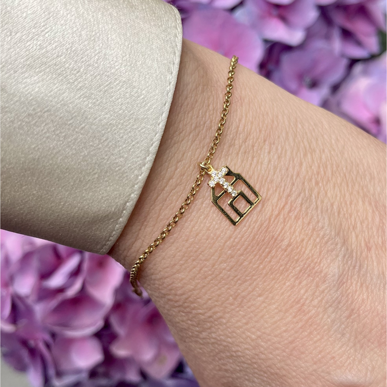 Bracciale La casa vivente in argento 925 con ciondolo in argento e zirconi. Lunghezza bracciale cm 14,5/18 regolabile. Finiture disponibili: argento bianco, dorato, rosato.