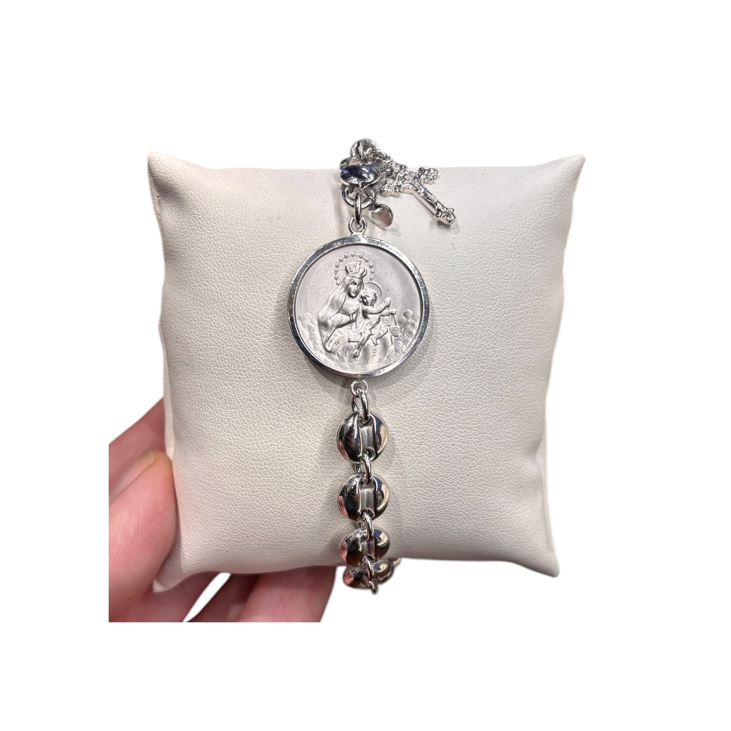 Bracciale in argento 925 con grande medaglia Scapolare del Carmelo.