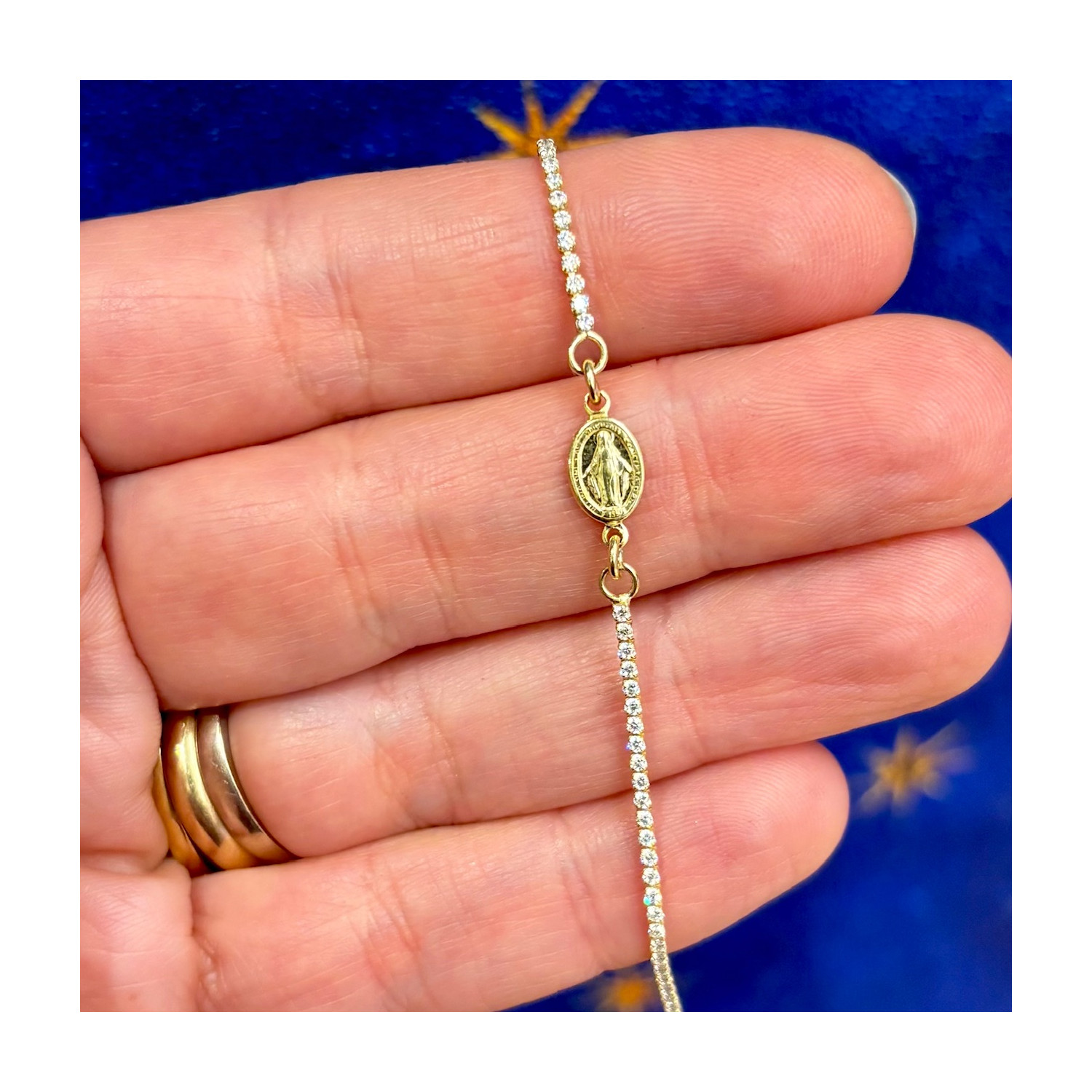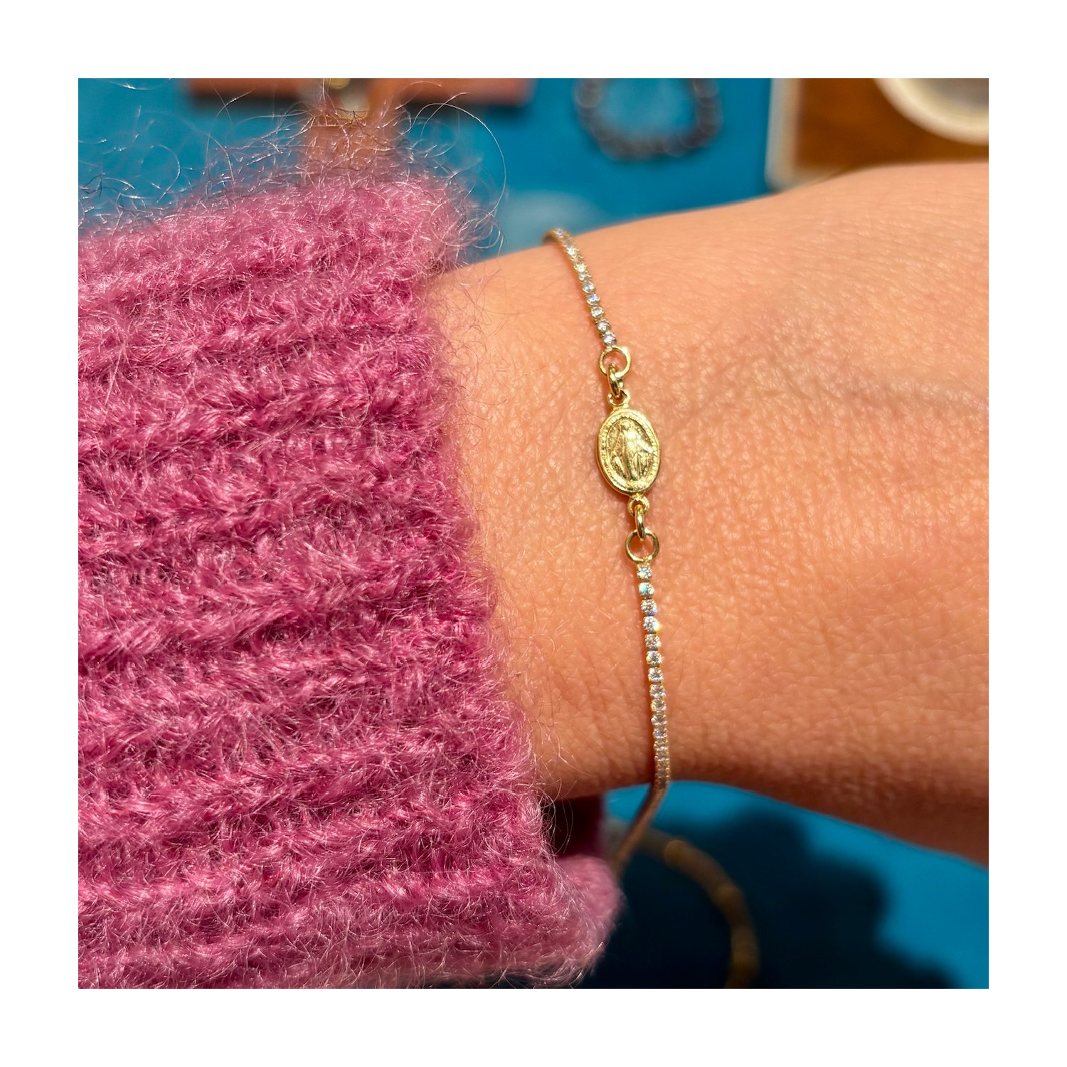 Bracciale in argento dorato, zirconi incassati e Medaglia Miracolosa.