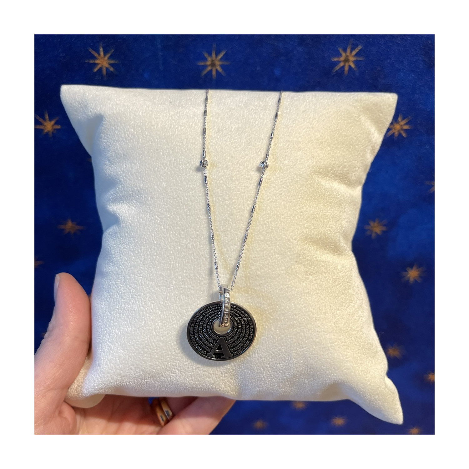 Collana con ciondolo in argento in Argento rodiato con preghiera Ave Maria.