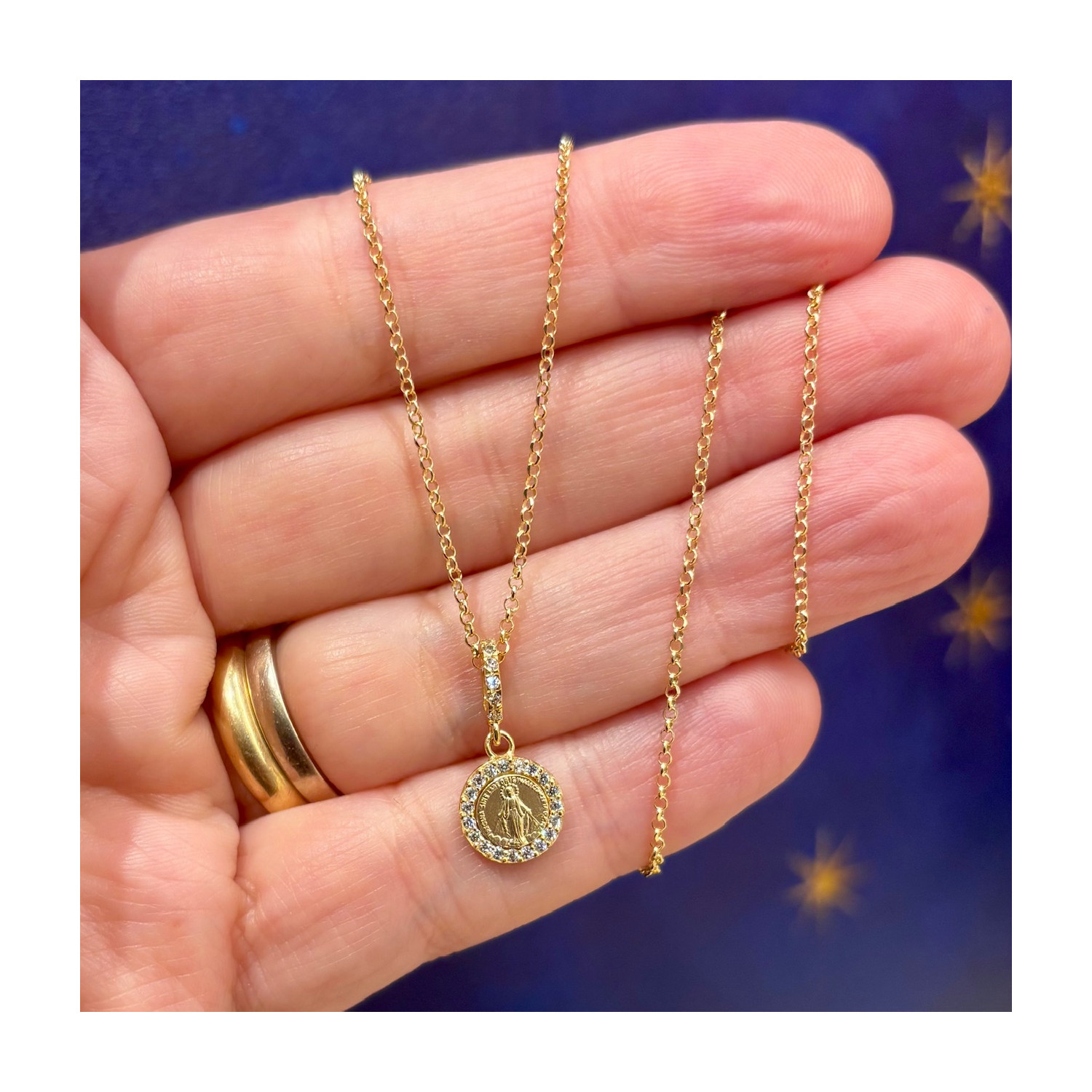 Collana con Medaglia Miracolosa in argento 925 con zirconi incassati.