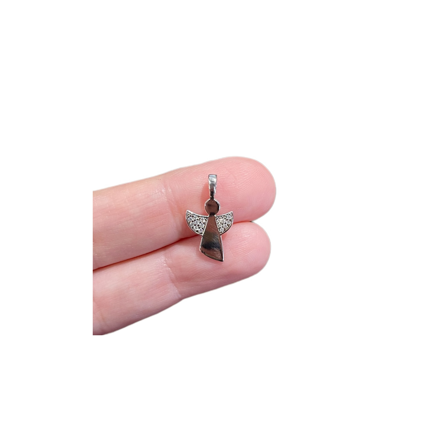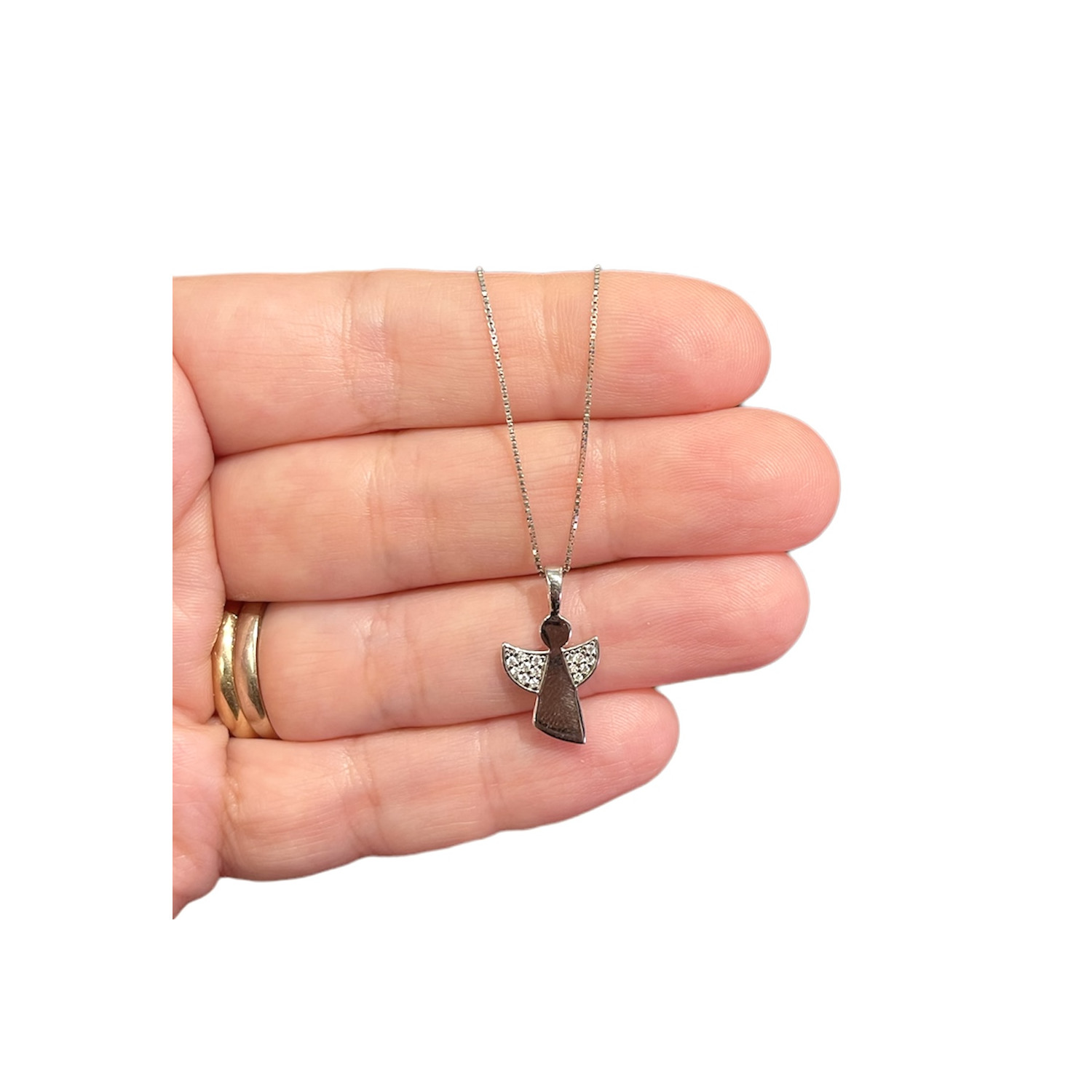 Collana con ciondolo Angelo stilizzato in argento 925 e zirconi.