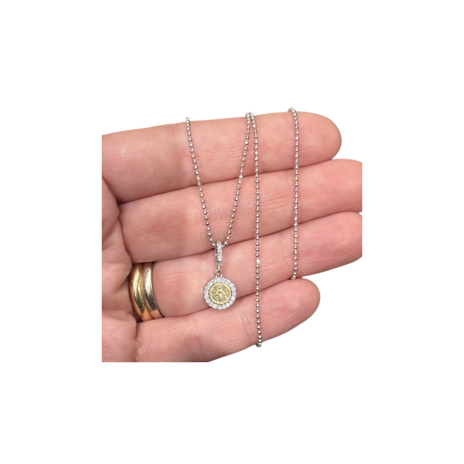 Collana pallini diamantati con medaglia Madonna Miracolosa tonda e zirconi