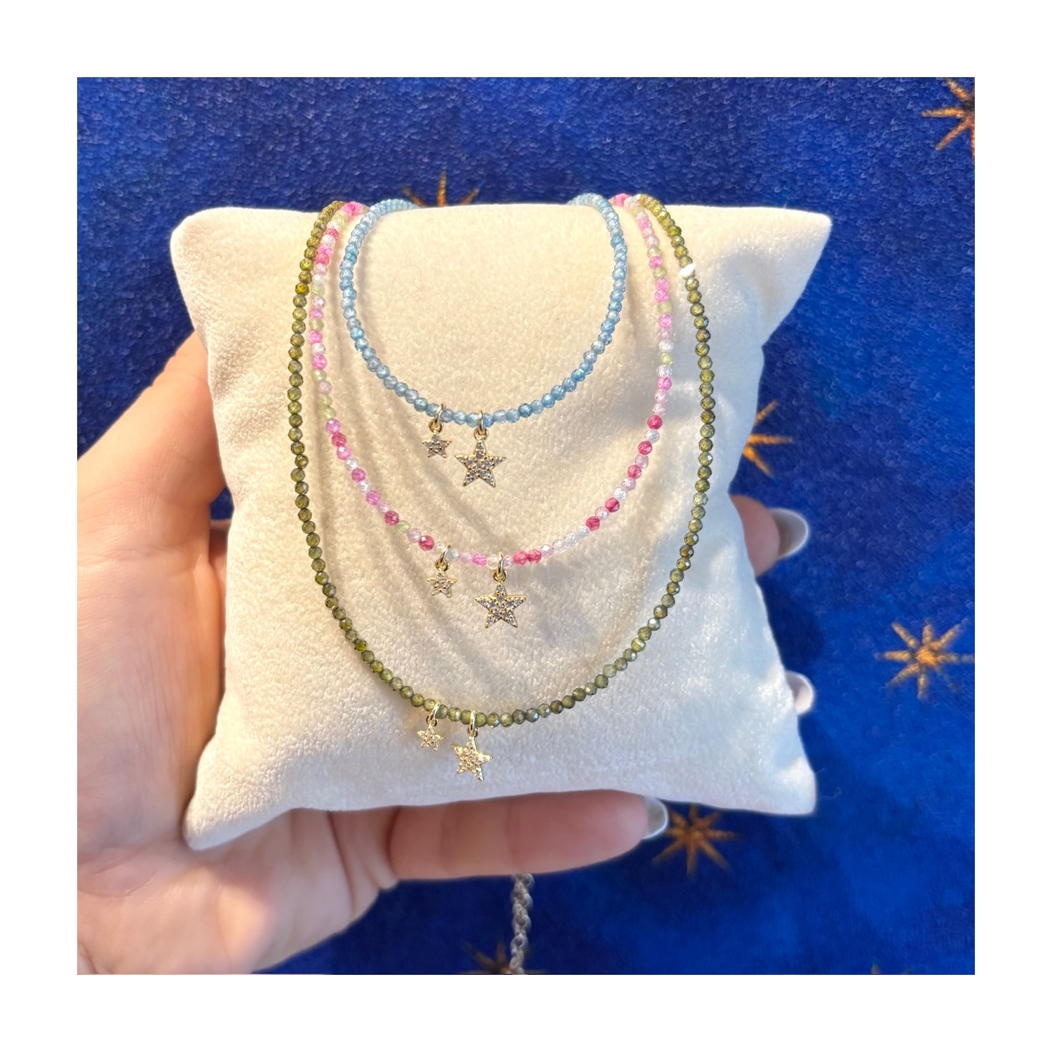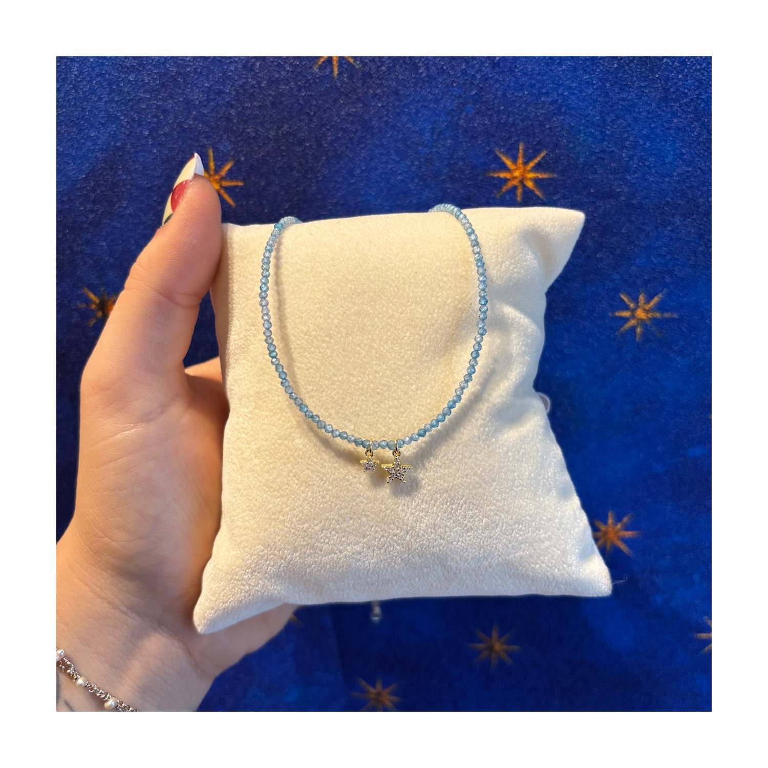 Collana girocollo in pietre con ciondoli stelle in argento 925 e zirconi