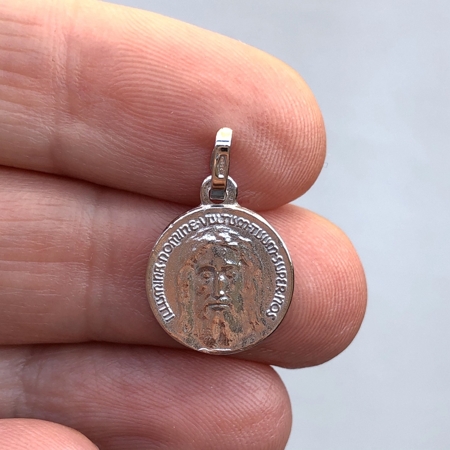 Collana con medaglia Volto Santo in oro bianco 18 kt.