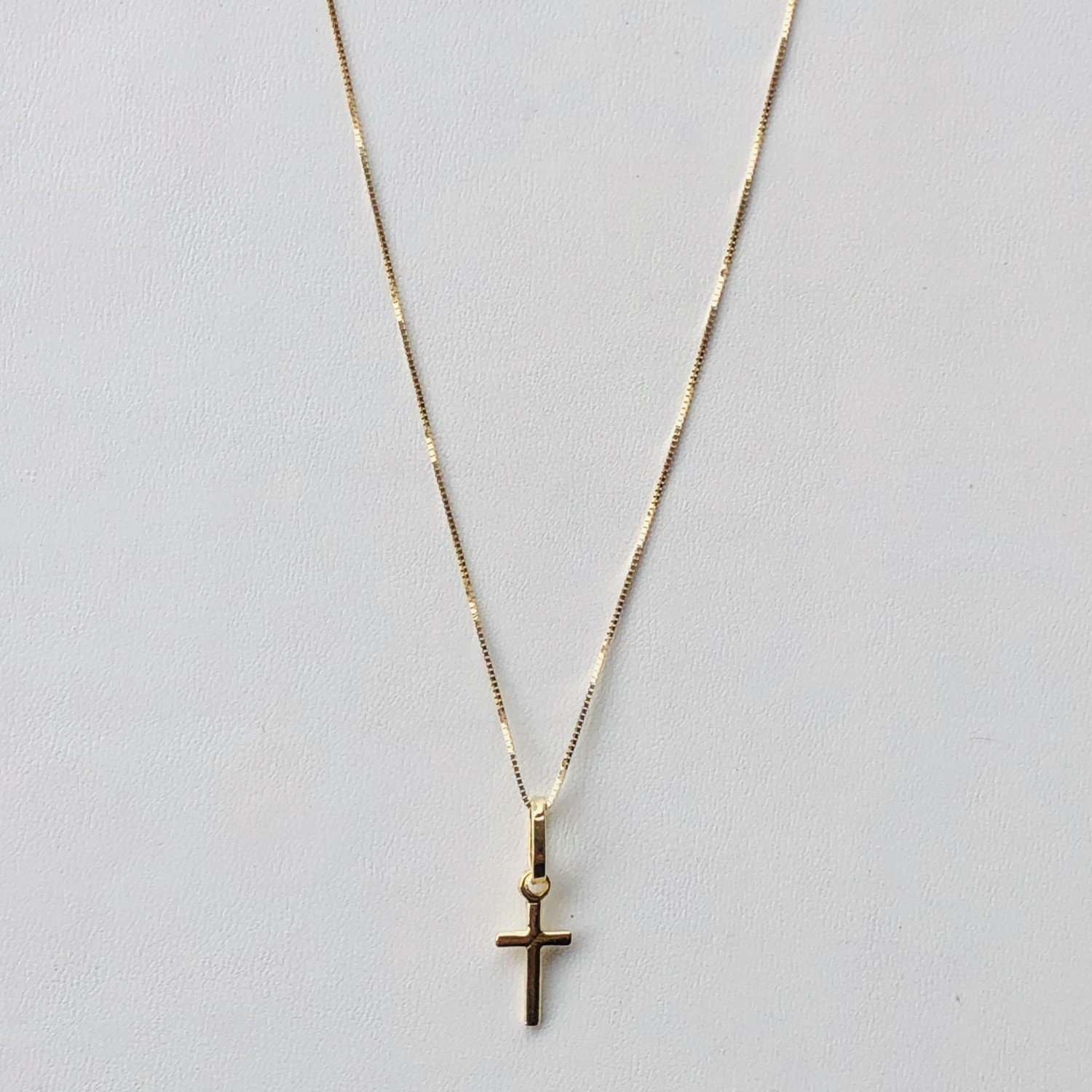 Catenina sottile maglia veneta con piccola croce in oro 18 carati.