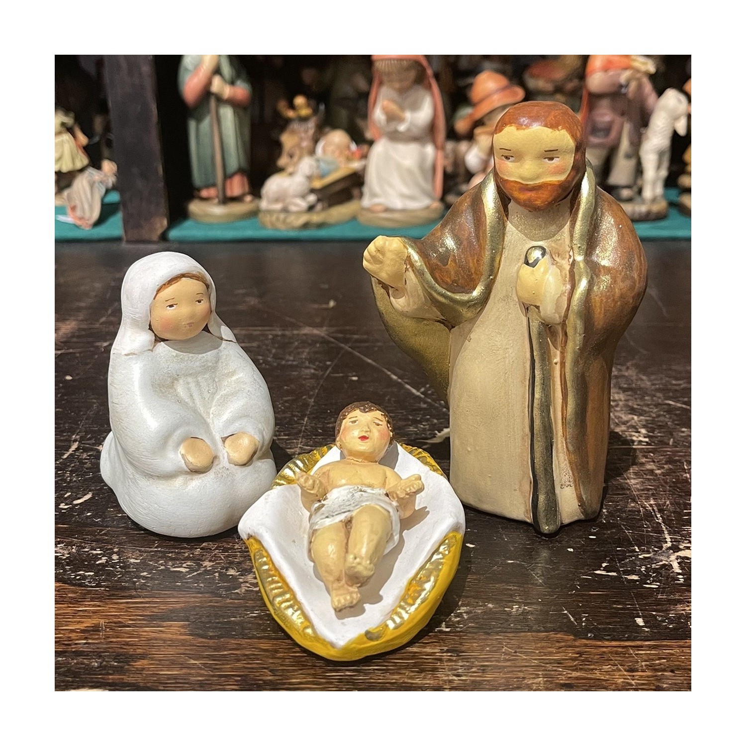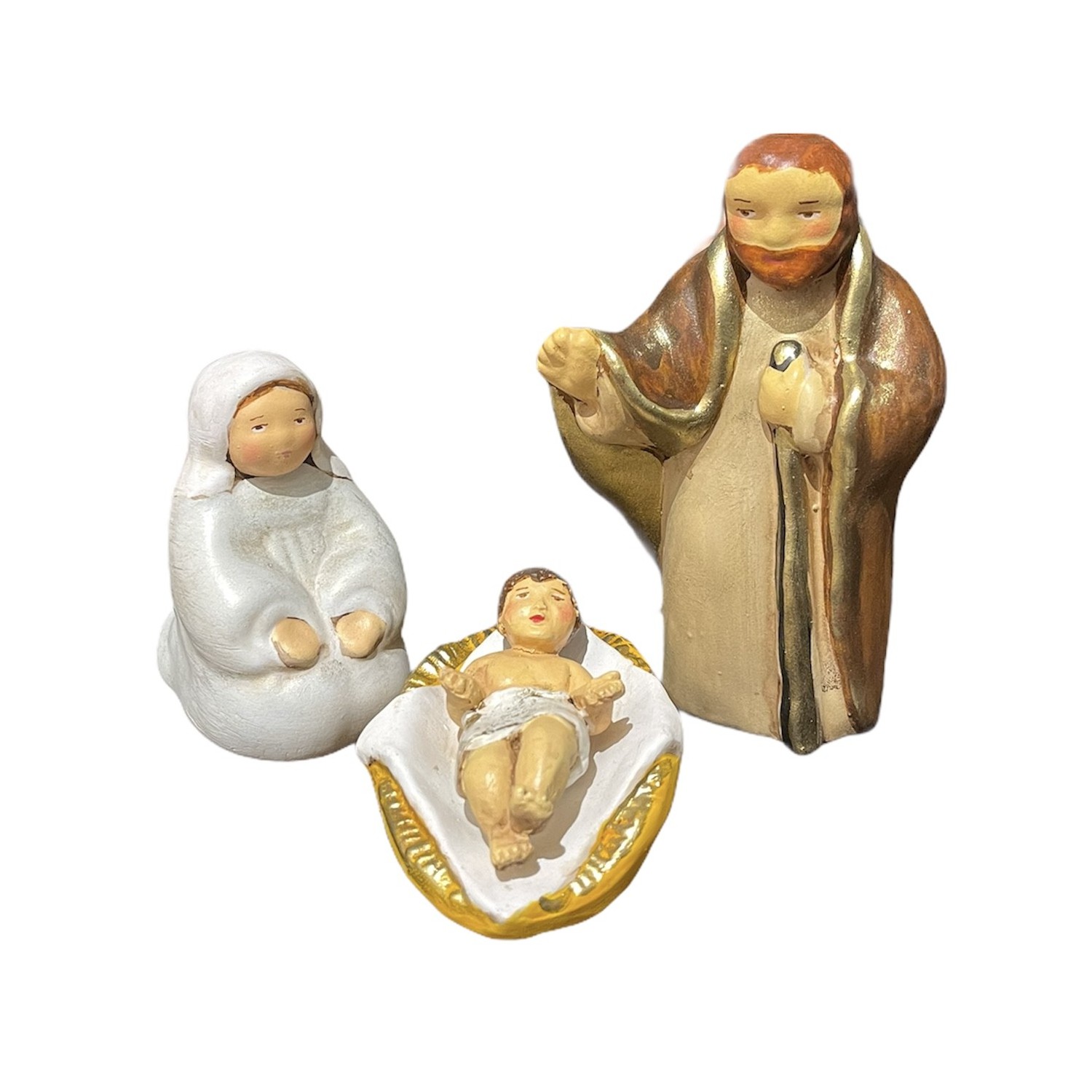 Presepe in ceramica a colatura, fatto a mano, dipinto a mano in italia.