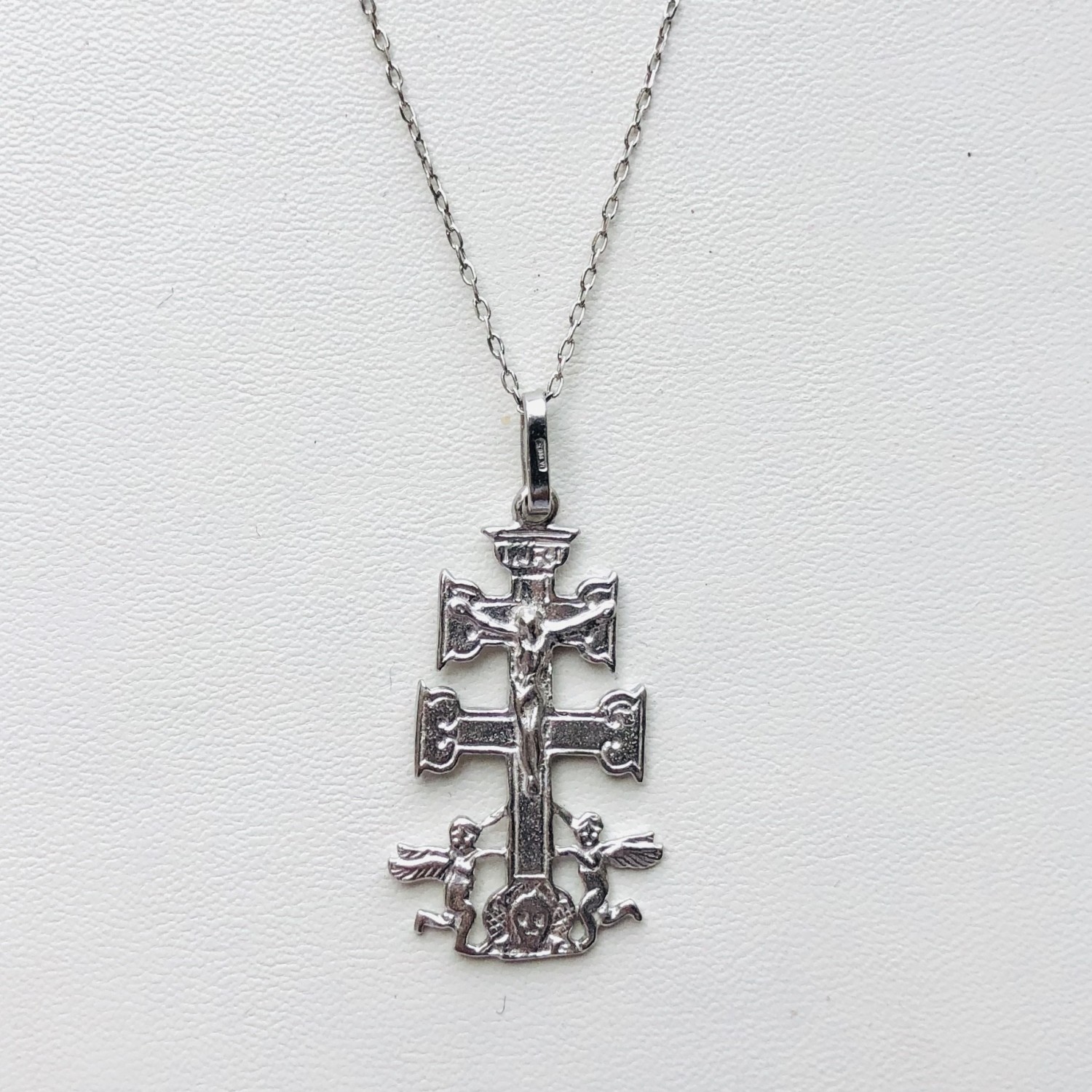 Croce caravaca in argento 800 la croce tradizionalmente garantisce protezione da ogni tipo di male. Da secoli la Cruz de Caravaca (in portoghese Cruz de Caravaça) è un simbolo religioso, mistico e spirituale di grandissimo potere a sintetizzare l’intervento divino nei momenti più difficili dell’esistenza, certamente, ma anche a rappresentare l’azione viva di Dio in ogni istante della nostra vita.