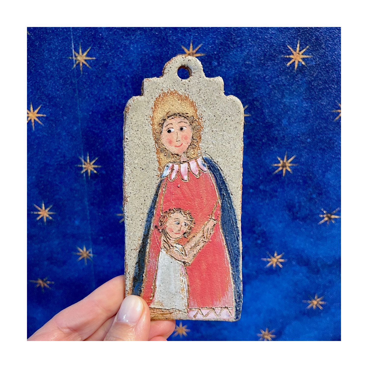 Abbraccio misericorsioso, pannello in grès fatto a mano.