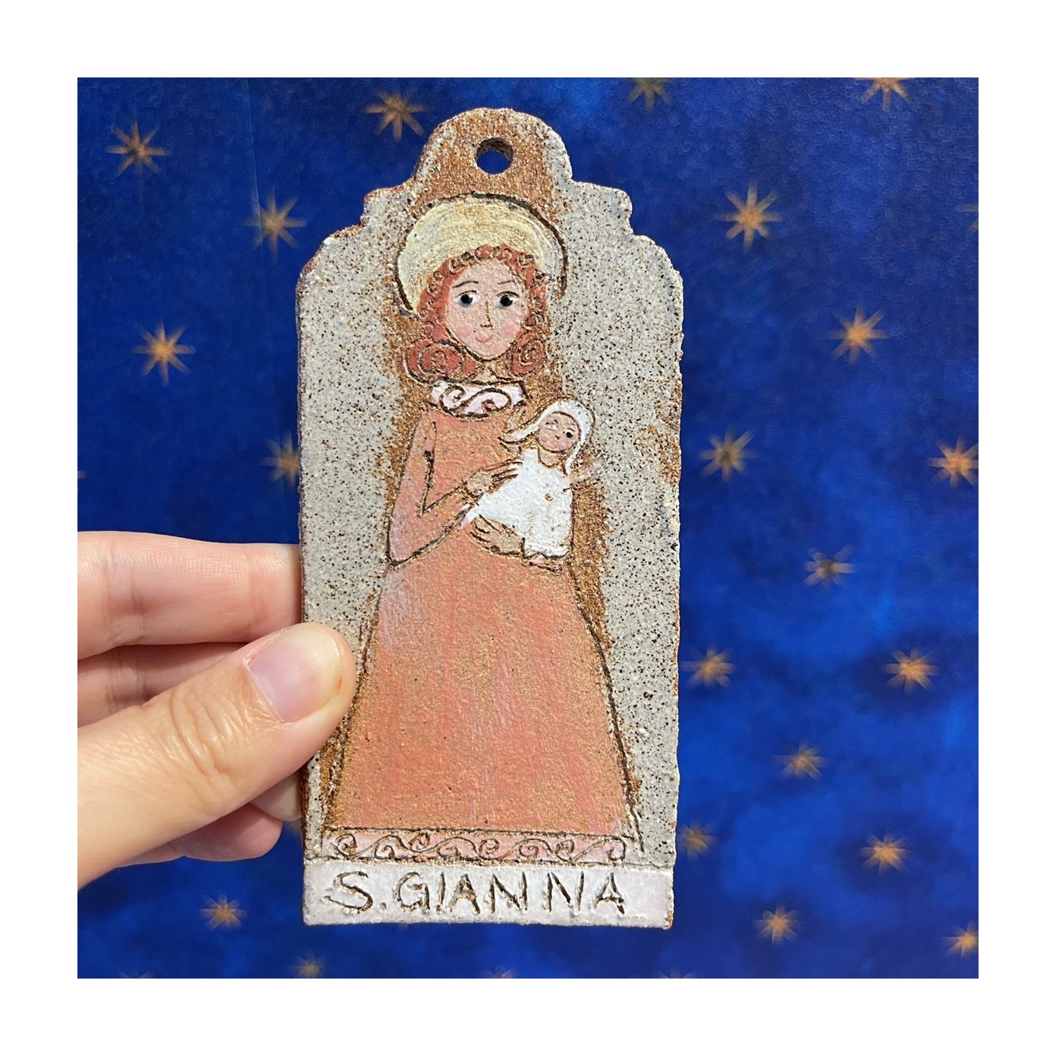 Santa GiannaBeretta Molla, piccolo pannello in grès da appendere fatto a mano, design esclusivo della nostra ceramista Tania