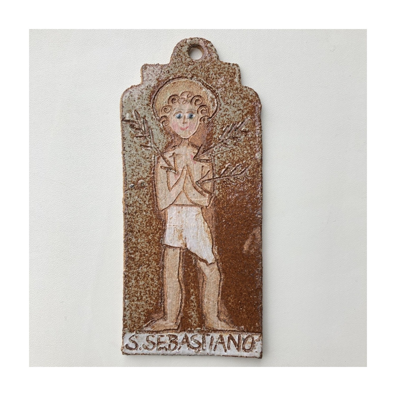 Santino in grès fatto a mano raffigurante San Sebastiano