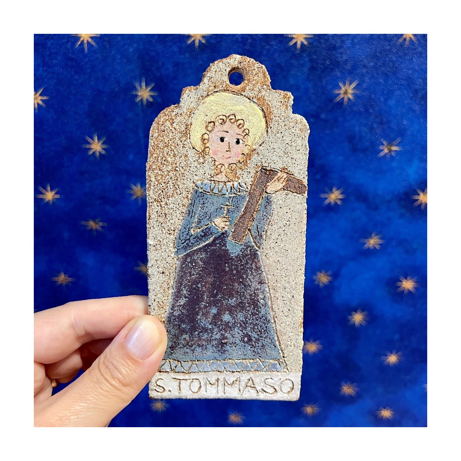 San Tommaso, piccolo pannello in grès da appendere fatto a mano, design esclusivo della nostra ceramista Tania