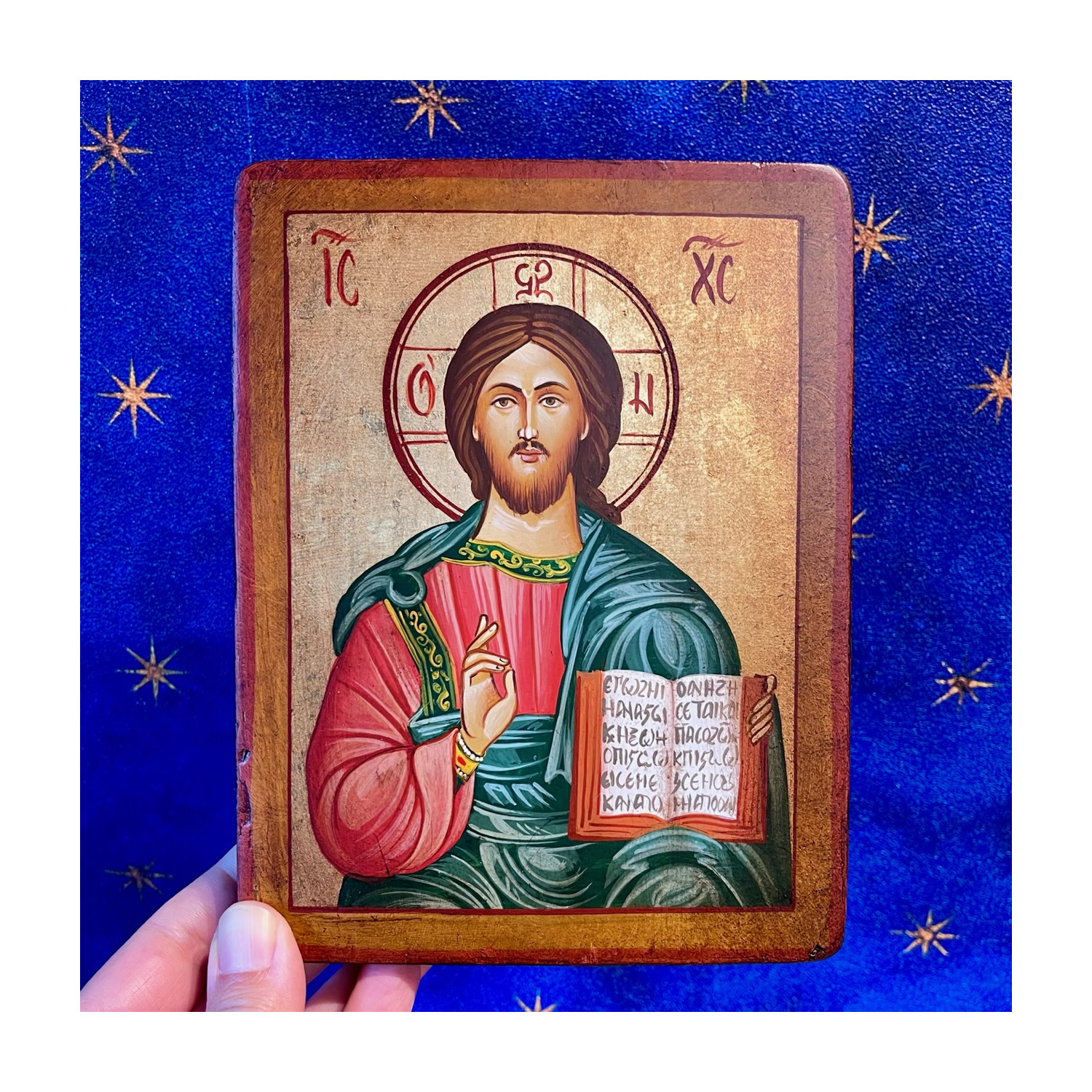Icona Cristo pantocratore , dipinta a mano in Romania.