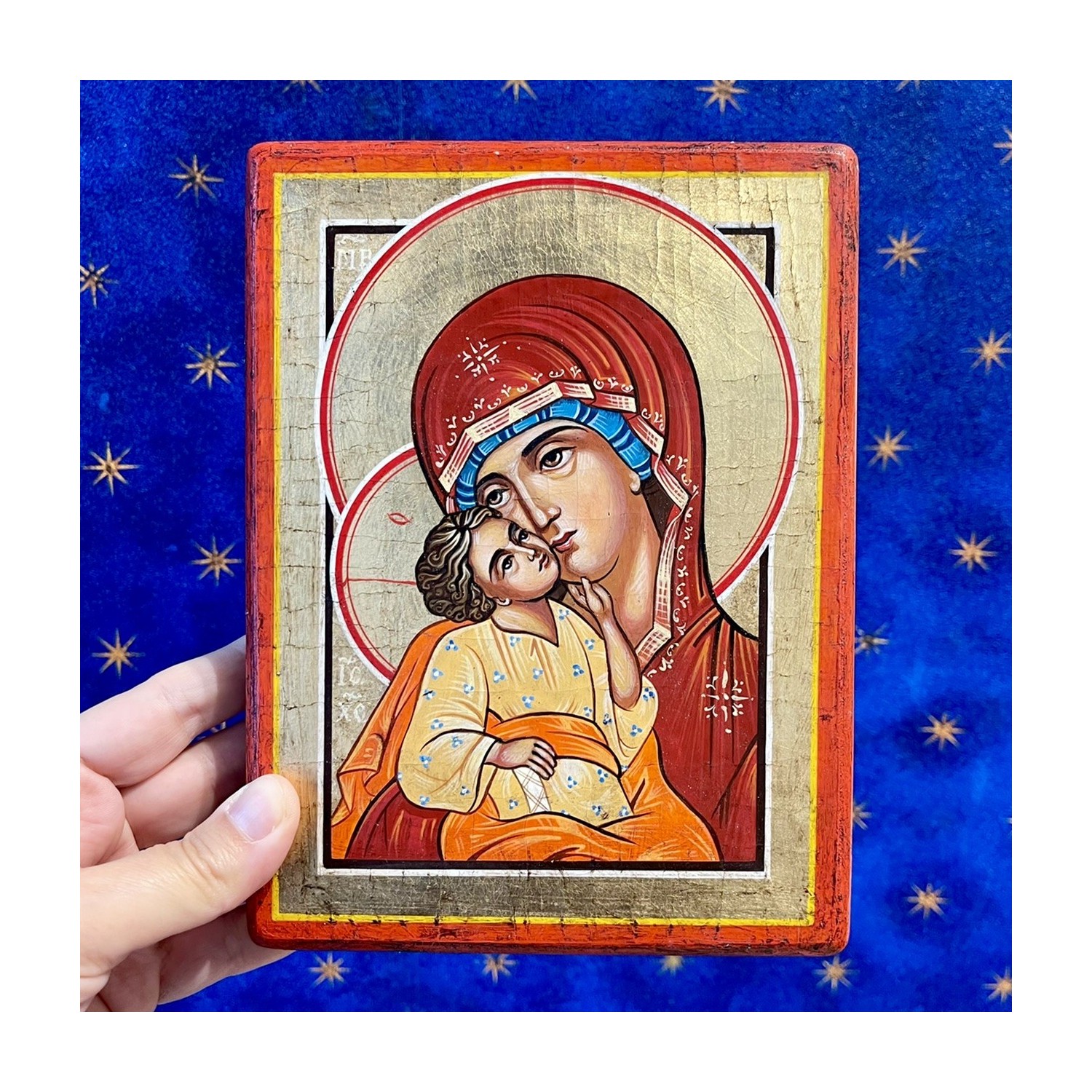 Icona dipinta a mano, Madonna della dolcezza, provenienza Bulgaria.