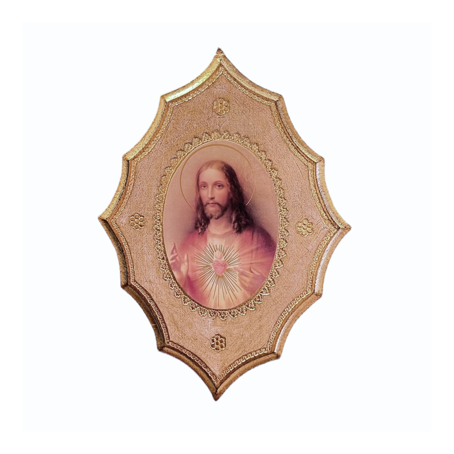 Tavola in legno con immagine riportata e fondo in foglia oro.