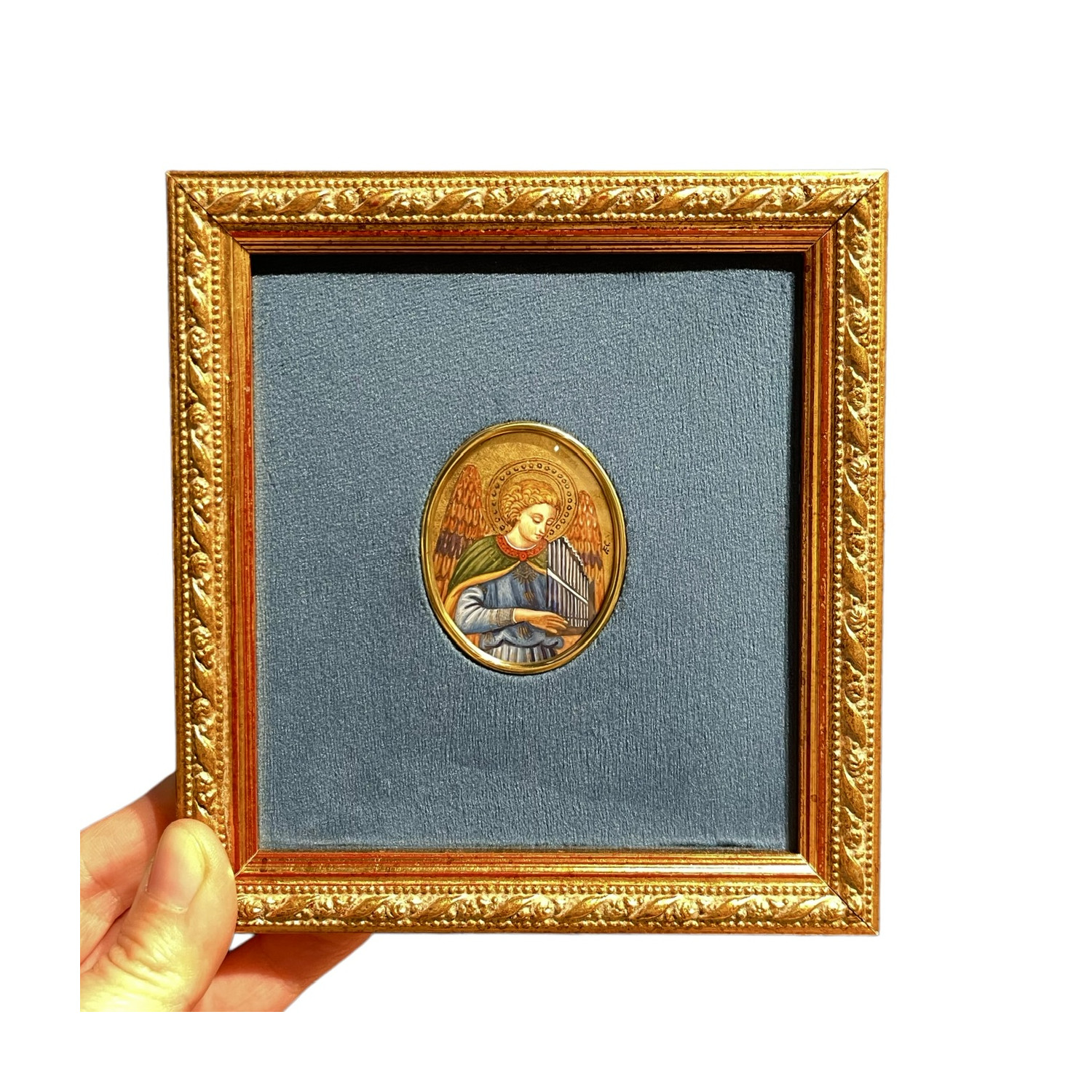 Cornice antica con miniatura ad olio su lastra di avorio, Angelo Beato Angelico