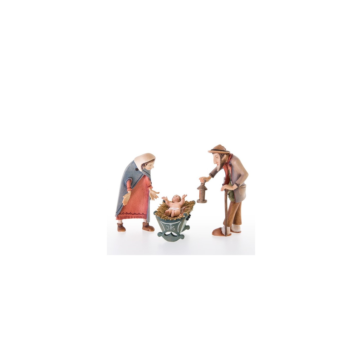 Sacra Famiglia. Presepe in legno di acero scolpito e dipinto a mano con colori ad olio in Val Gardena; opera dello scultore Harald Kastlunger e realizzato dalla ditta Lepi.