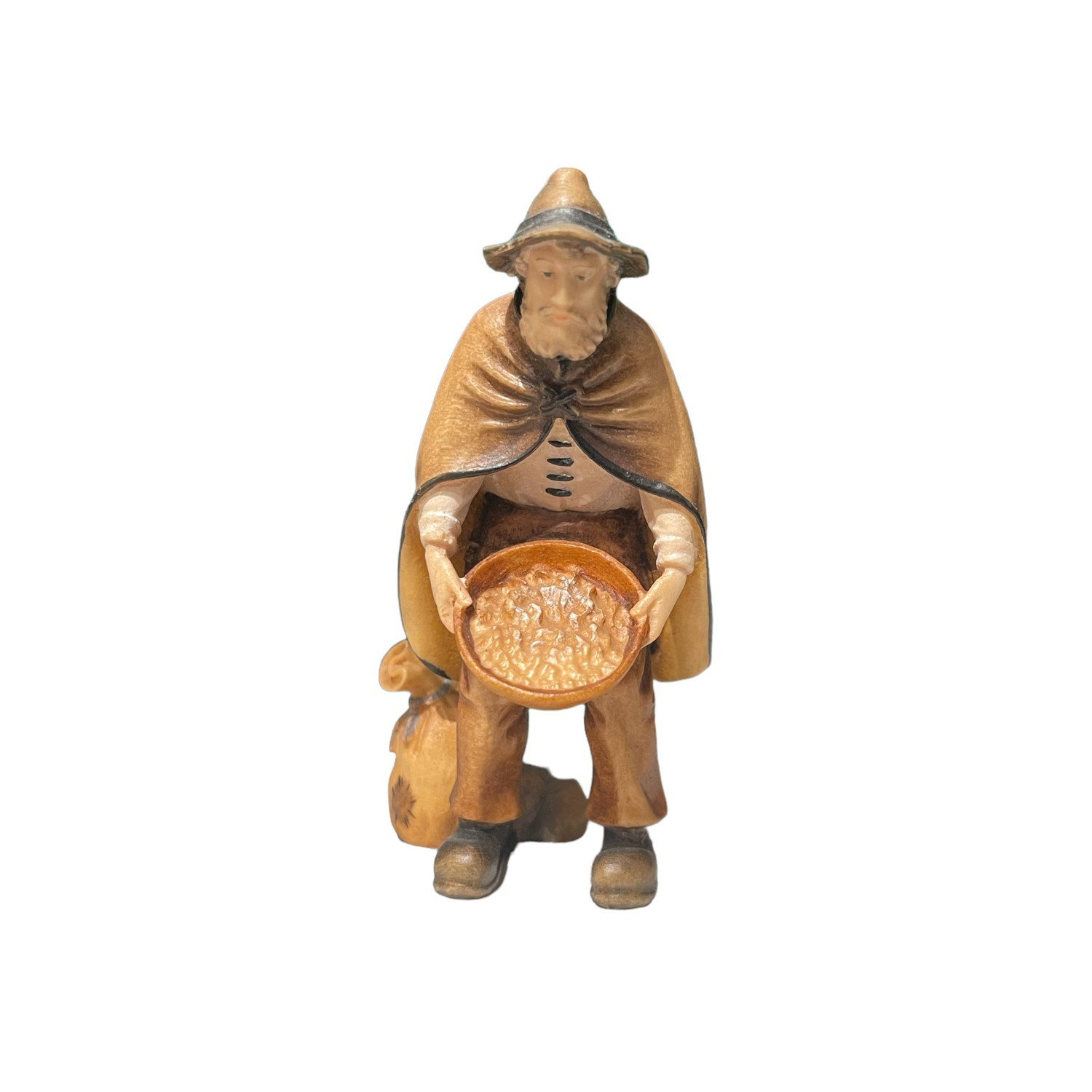 Pastore con mangime . Presepe in legno d'acero scolpito e dipinto