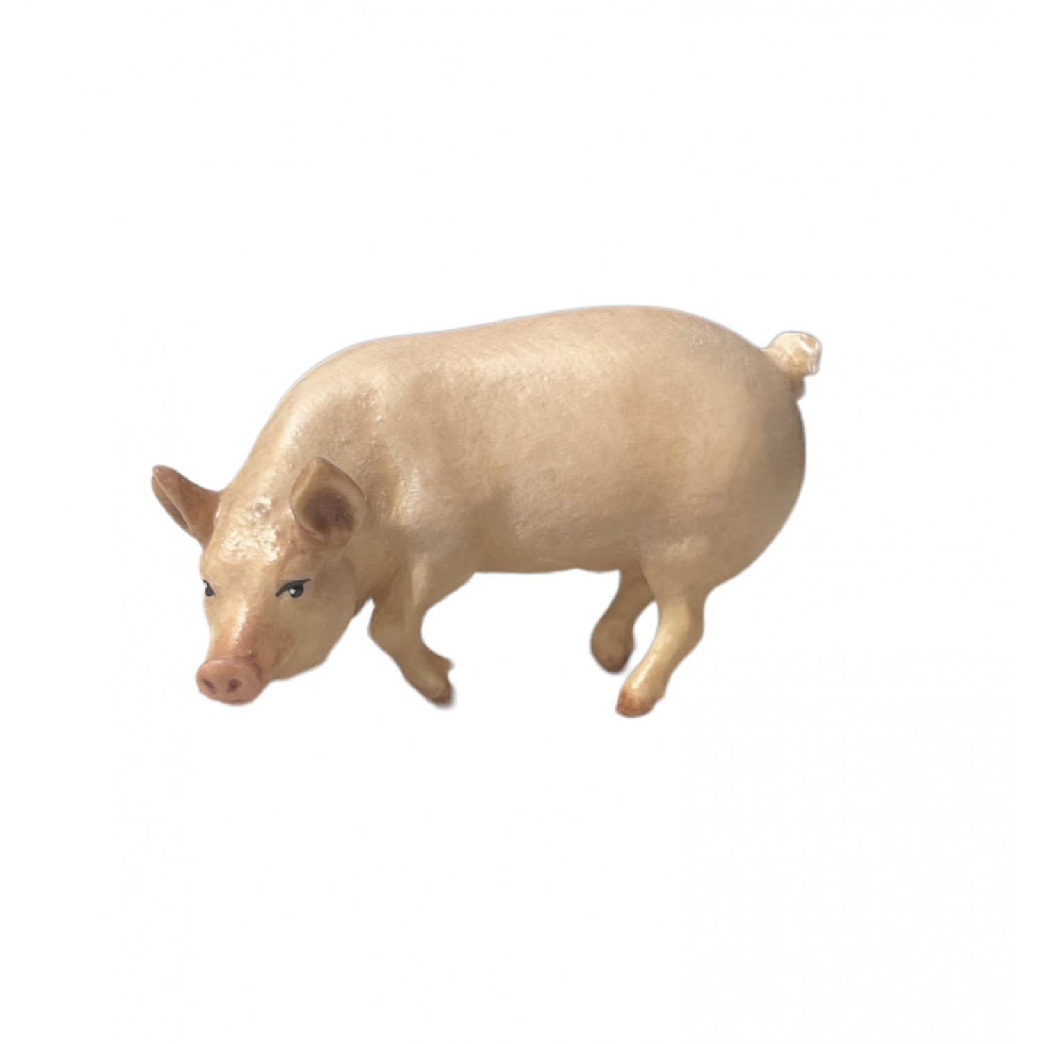 Pig. Presepe in legno d'acero scolpito e dipinto