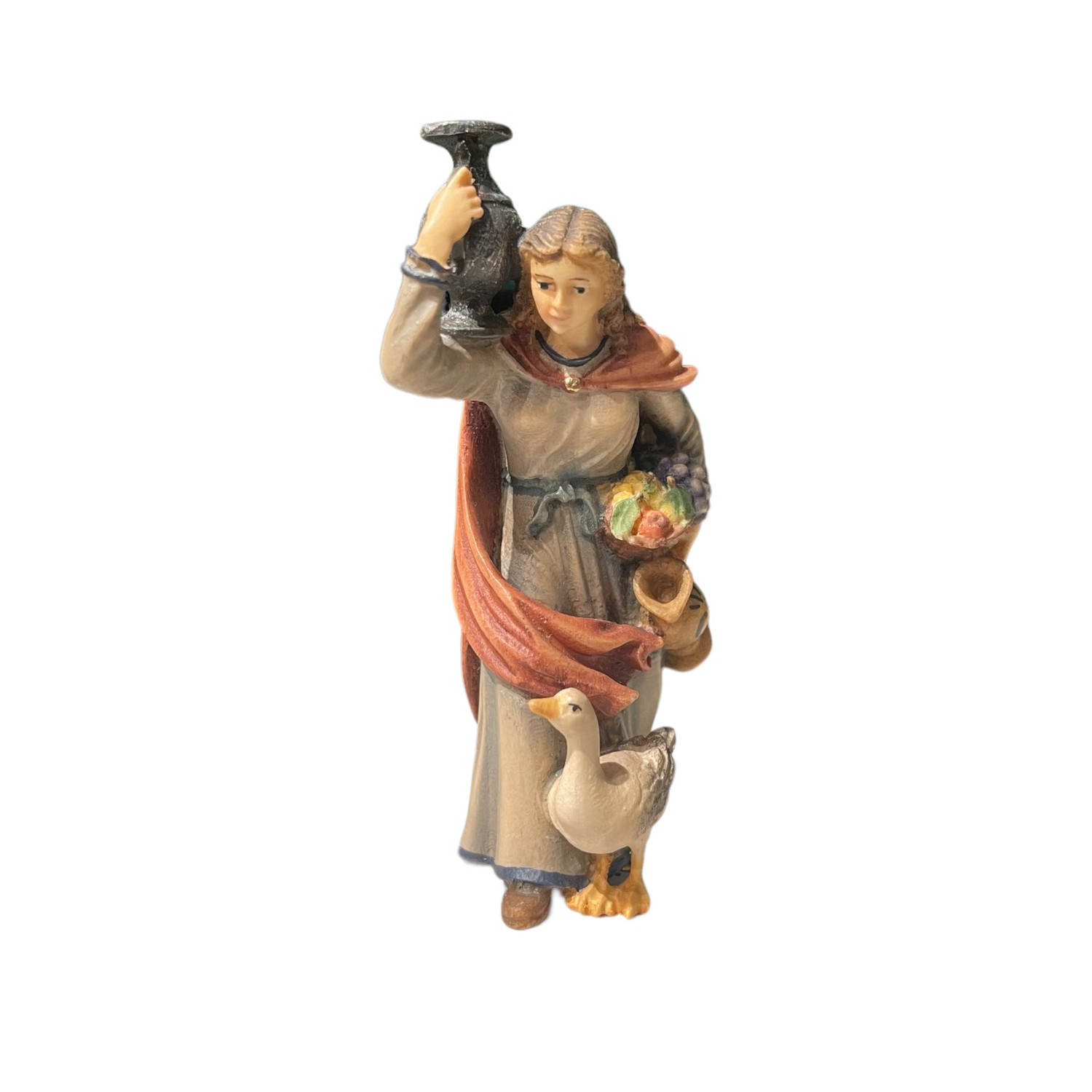 Donna con brocca. Presepe in legno d'acero scolpito e dipinto