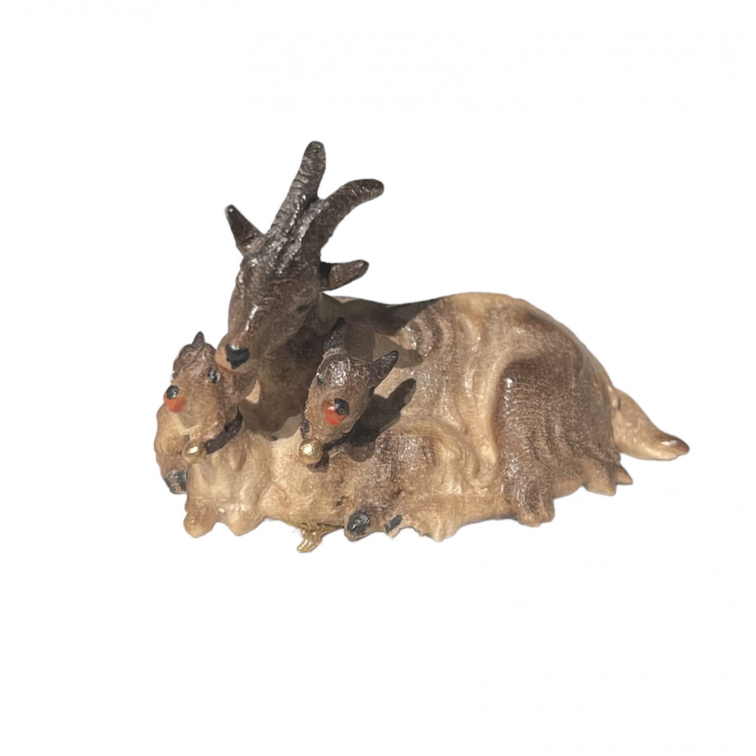 Famiglia di capre. Presepe in legno d'acero scolpito e dipinto