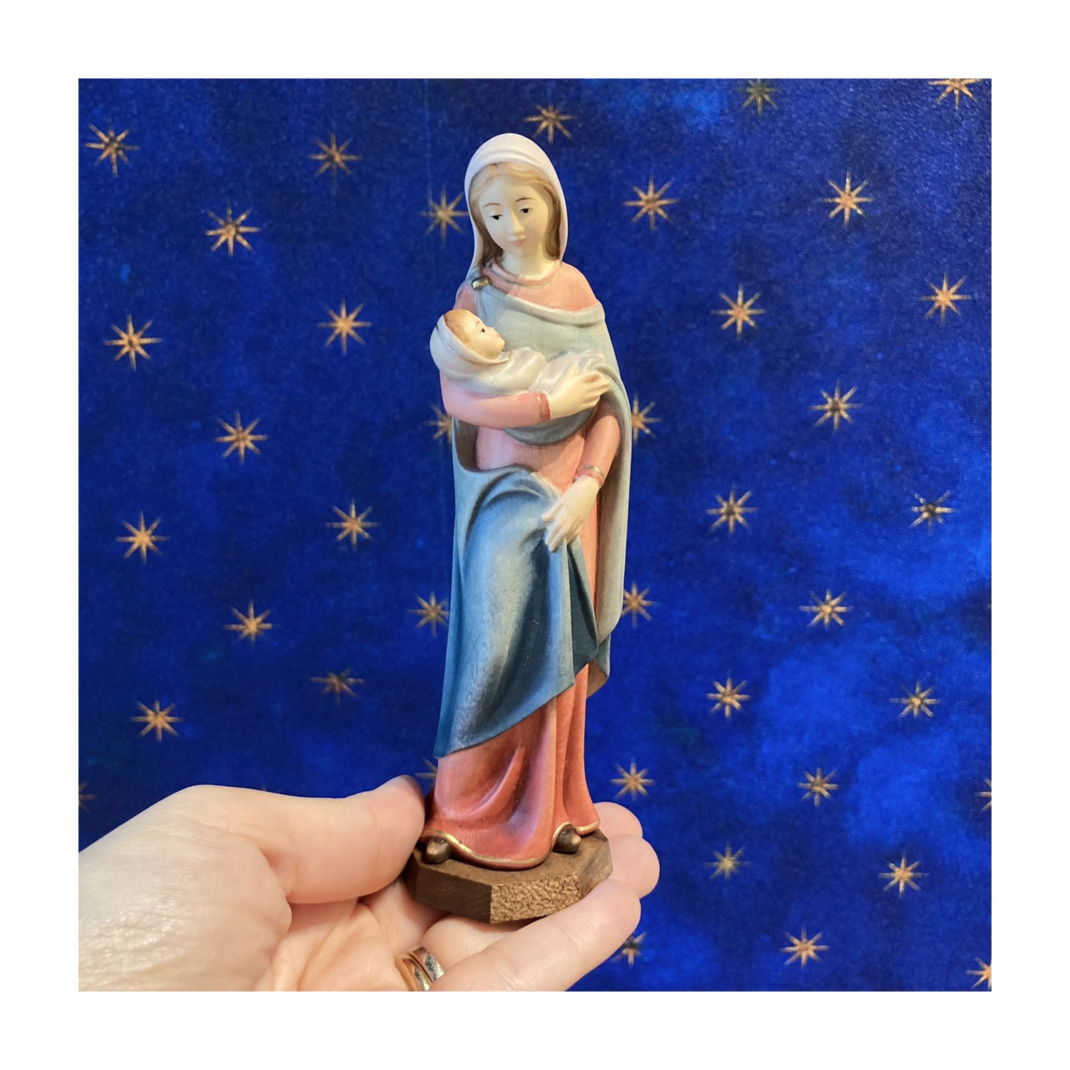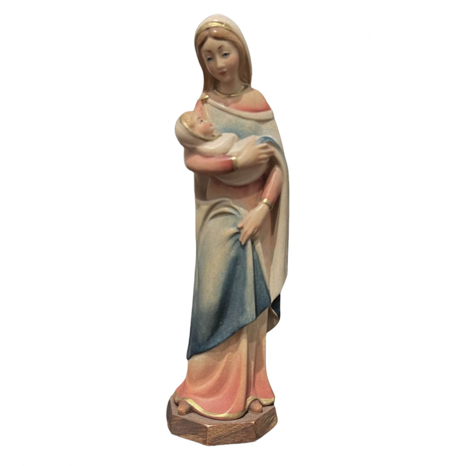 Statua in legno di acero scolpita a mano dagli scultori della Val Gardena, dipinta a mano con colori ad olio.