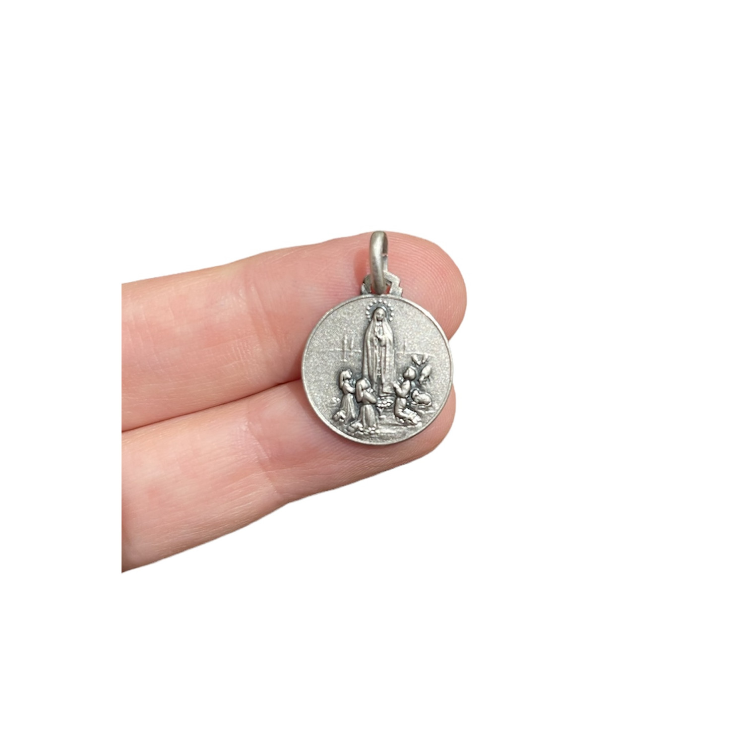 Medaglia Madonna di Fatima in argento diametro 18 mm.
