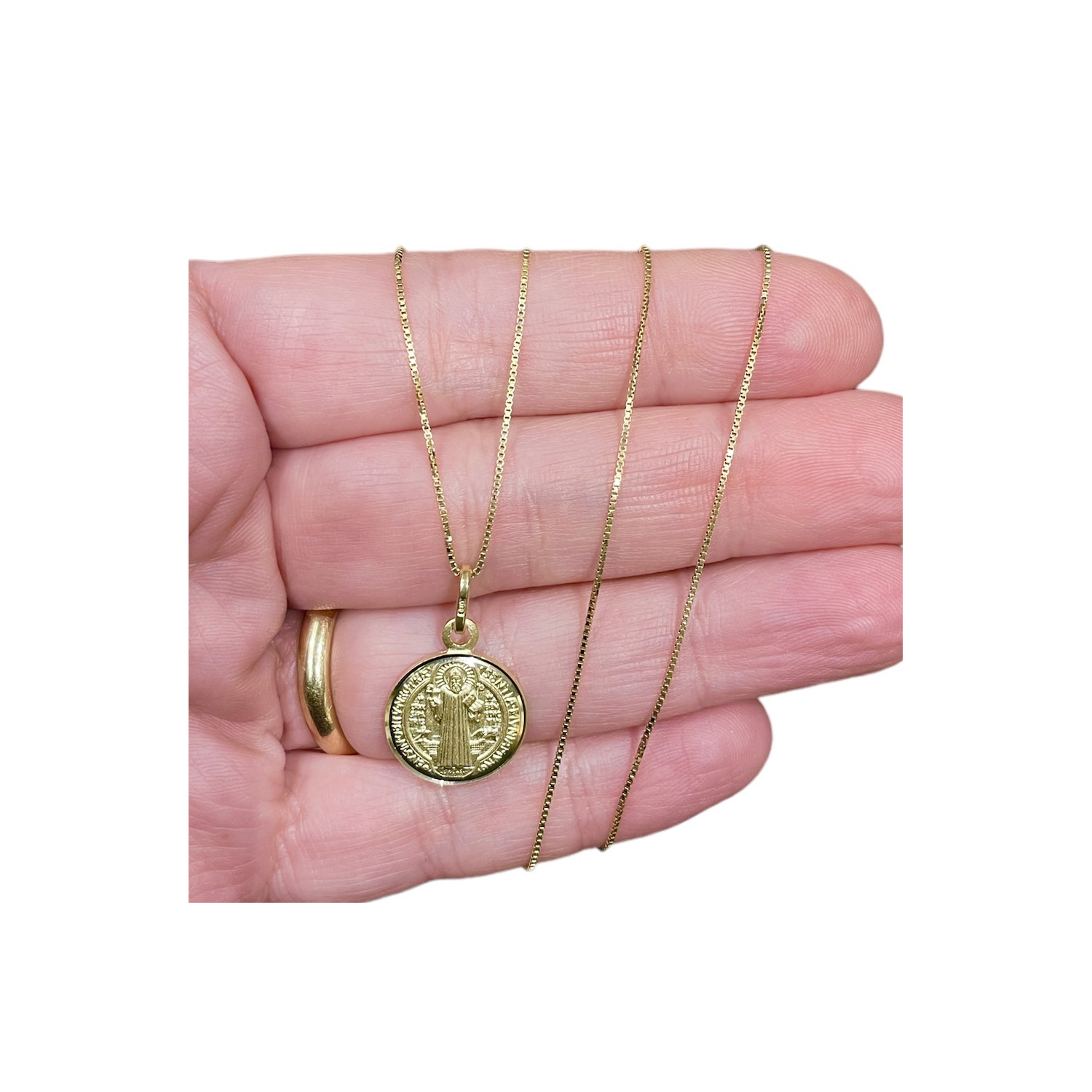 Medaglia San Benedetto in argento 925 dorato. Diametro medaglia mm 15.