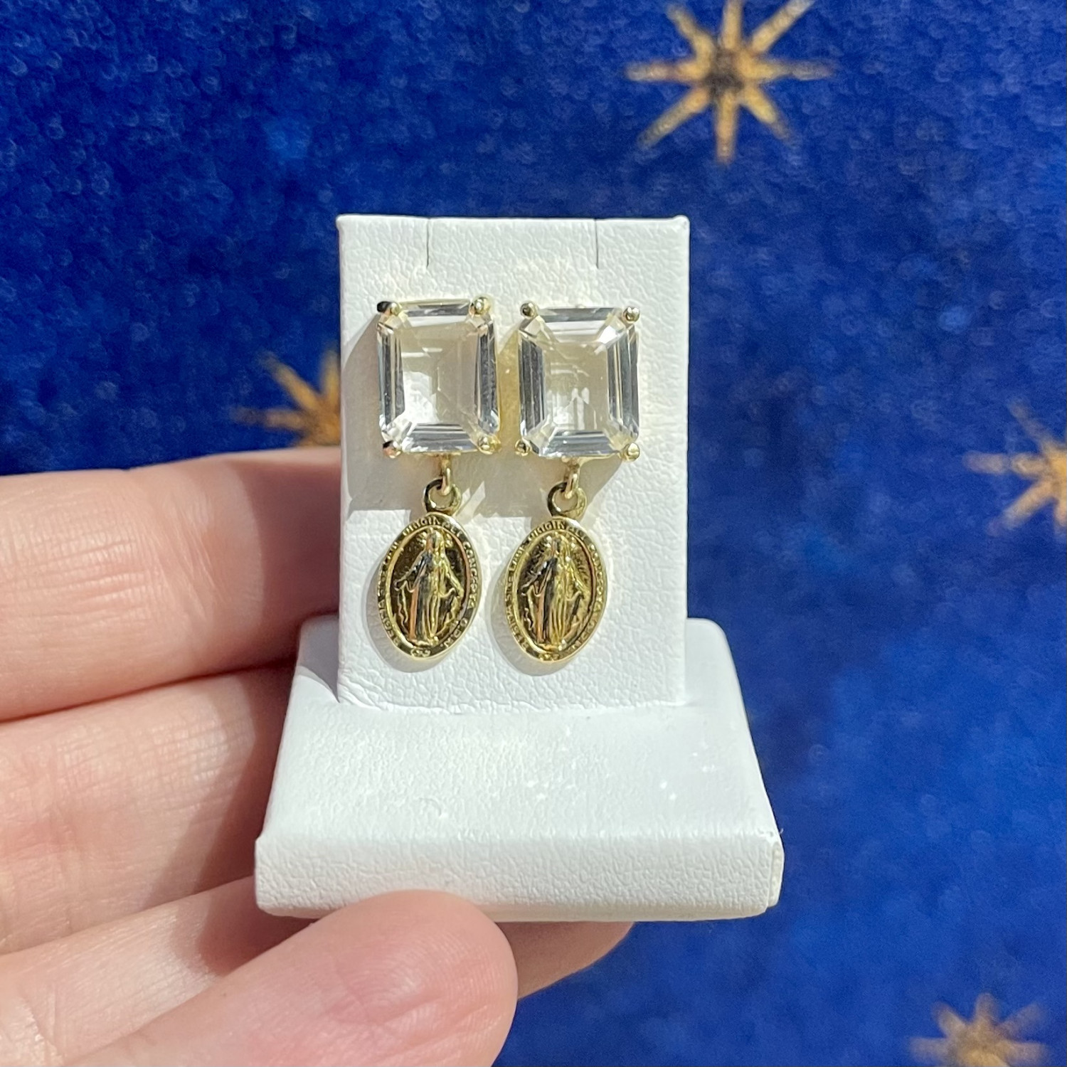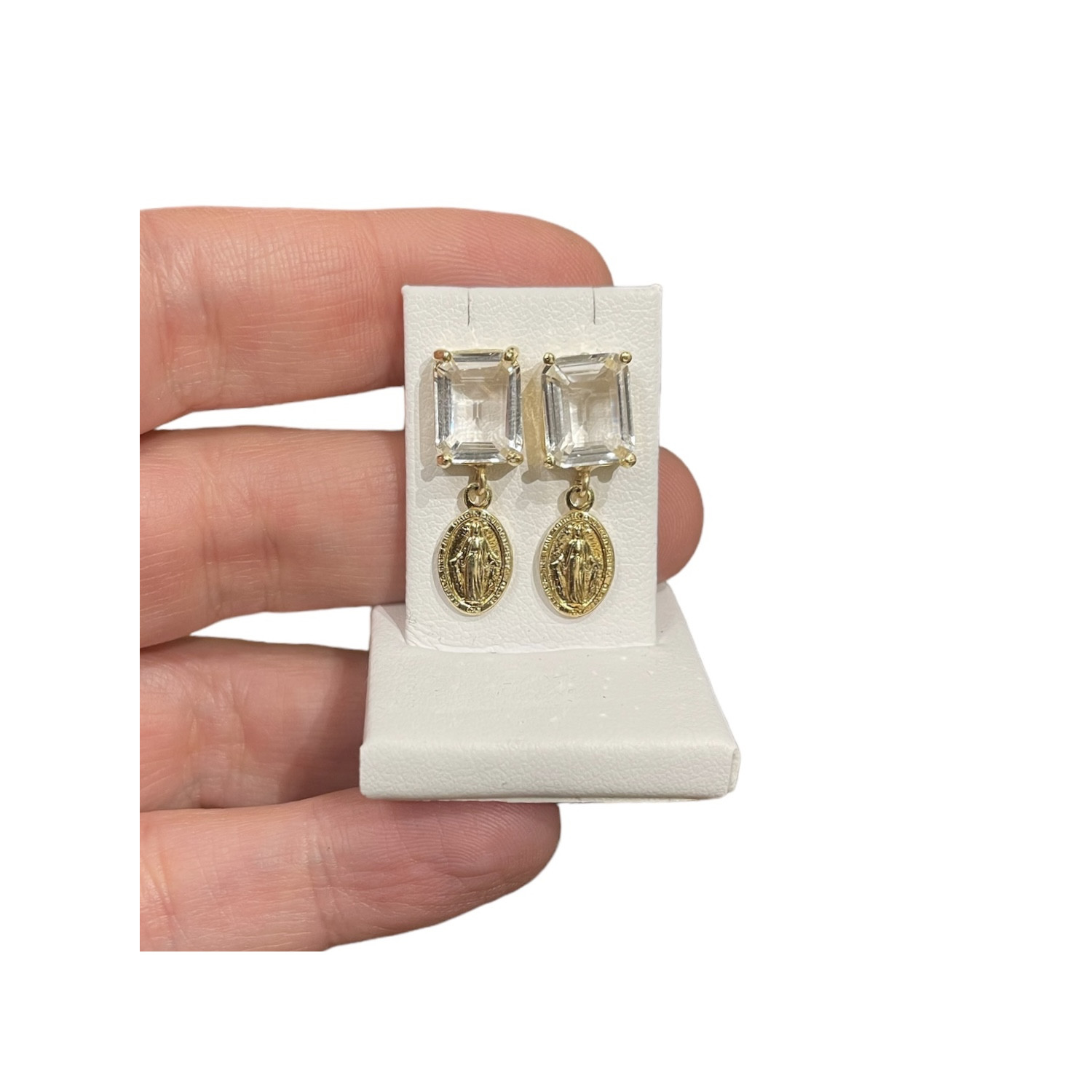 Orecchini in argento placcato oro 18 k, con Medaglia Miracolosa pendente.