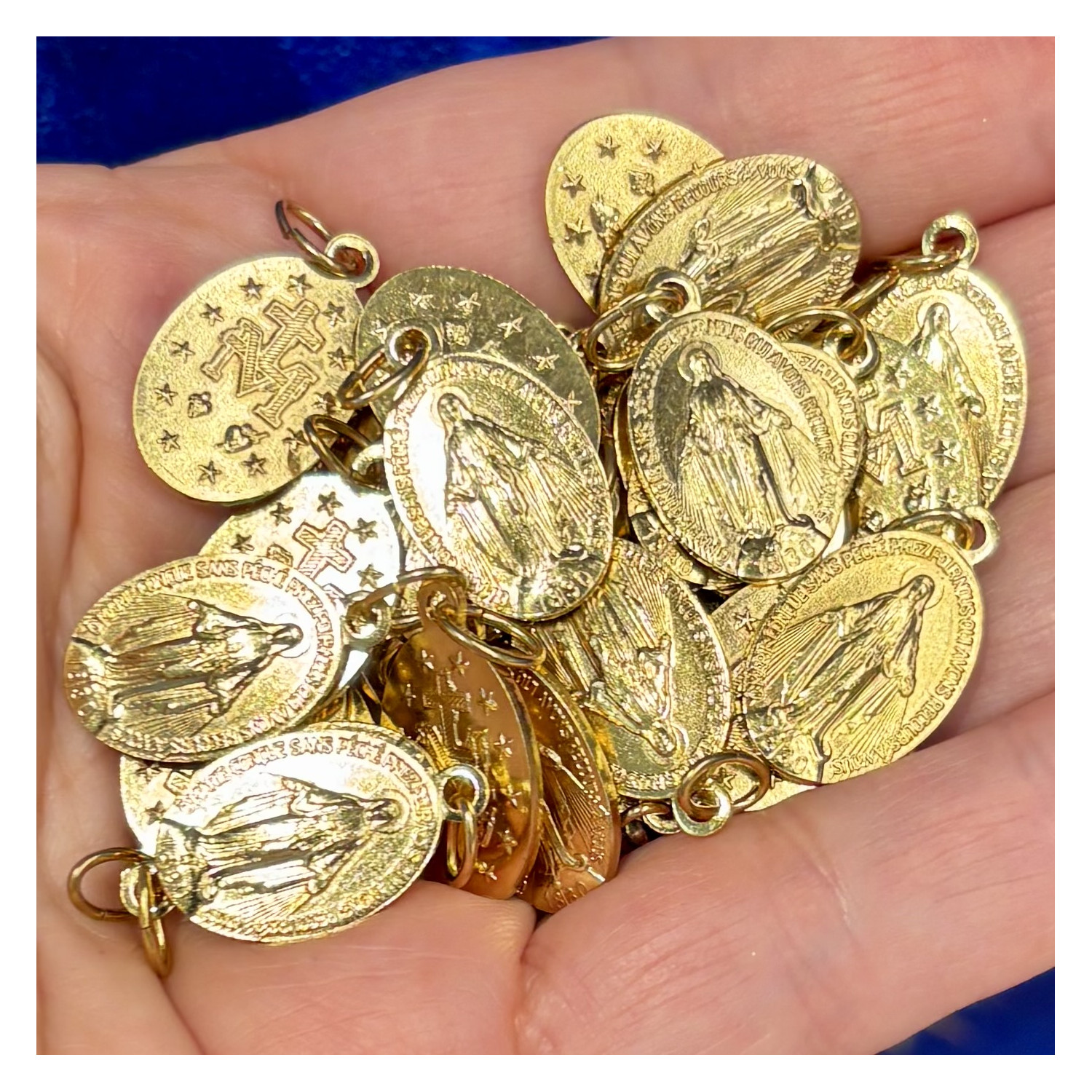 Pacchetto 10 Medaglie Miracolose originali con iscrizione in francese in metallo dorato.