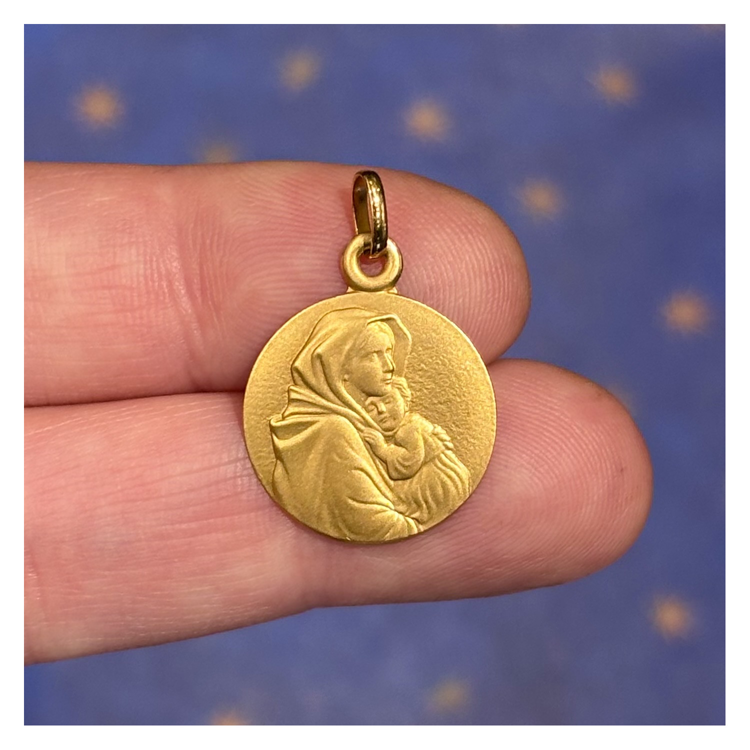 Medaglia Madonna con bambino in oro 18 carati. Diametro mm 18.