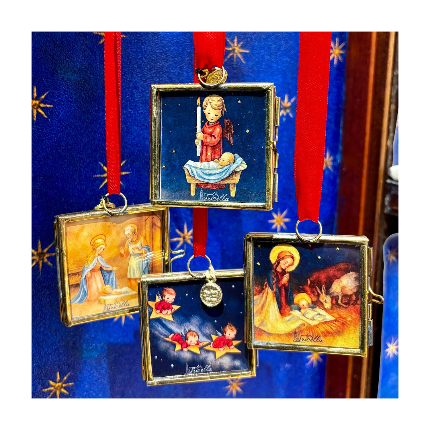 Le Finestrelle di Natale nascono dall’idea di reinterpretare le vecchie cartoline natalizie con soggetti religiosi, trasformandole in piccole cornici preziose.