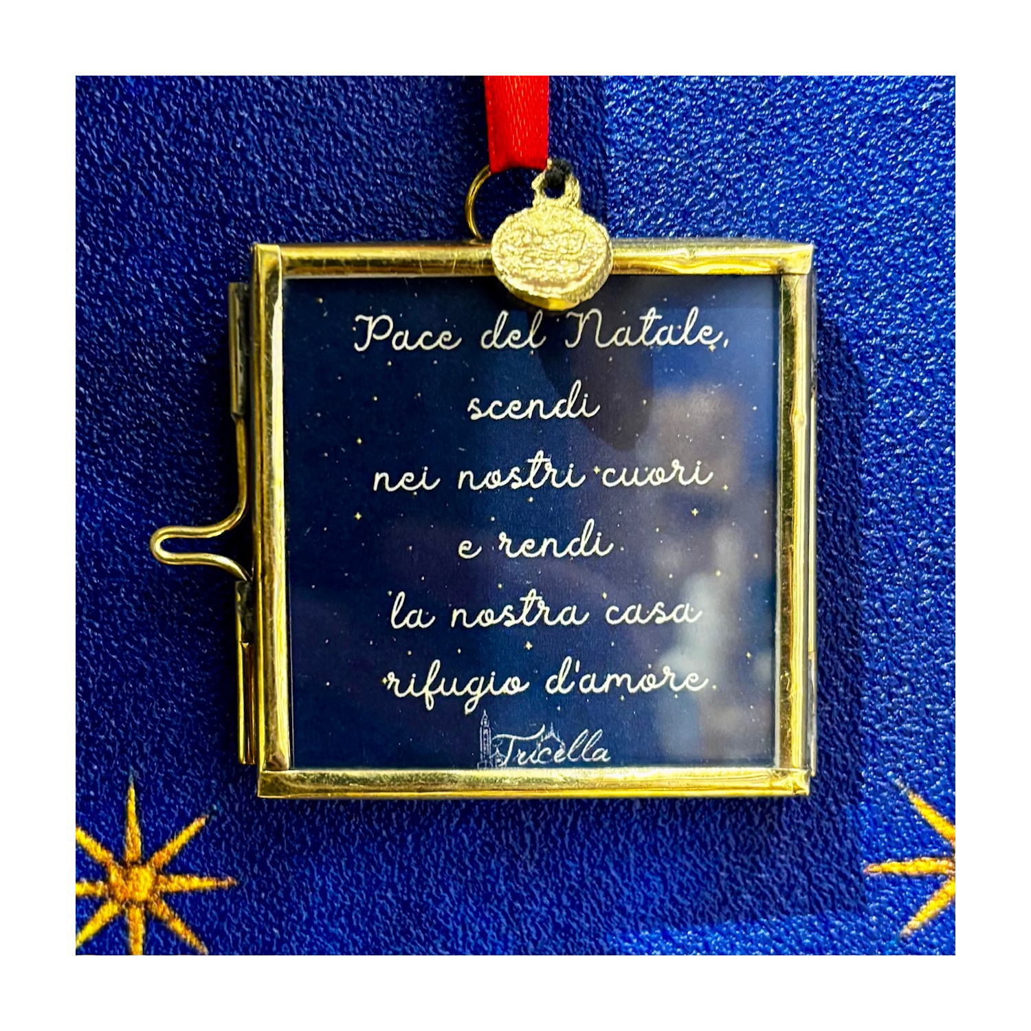 cornice 5×5 in ottone con immagine acquerellata e preghiera