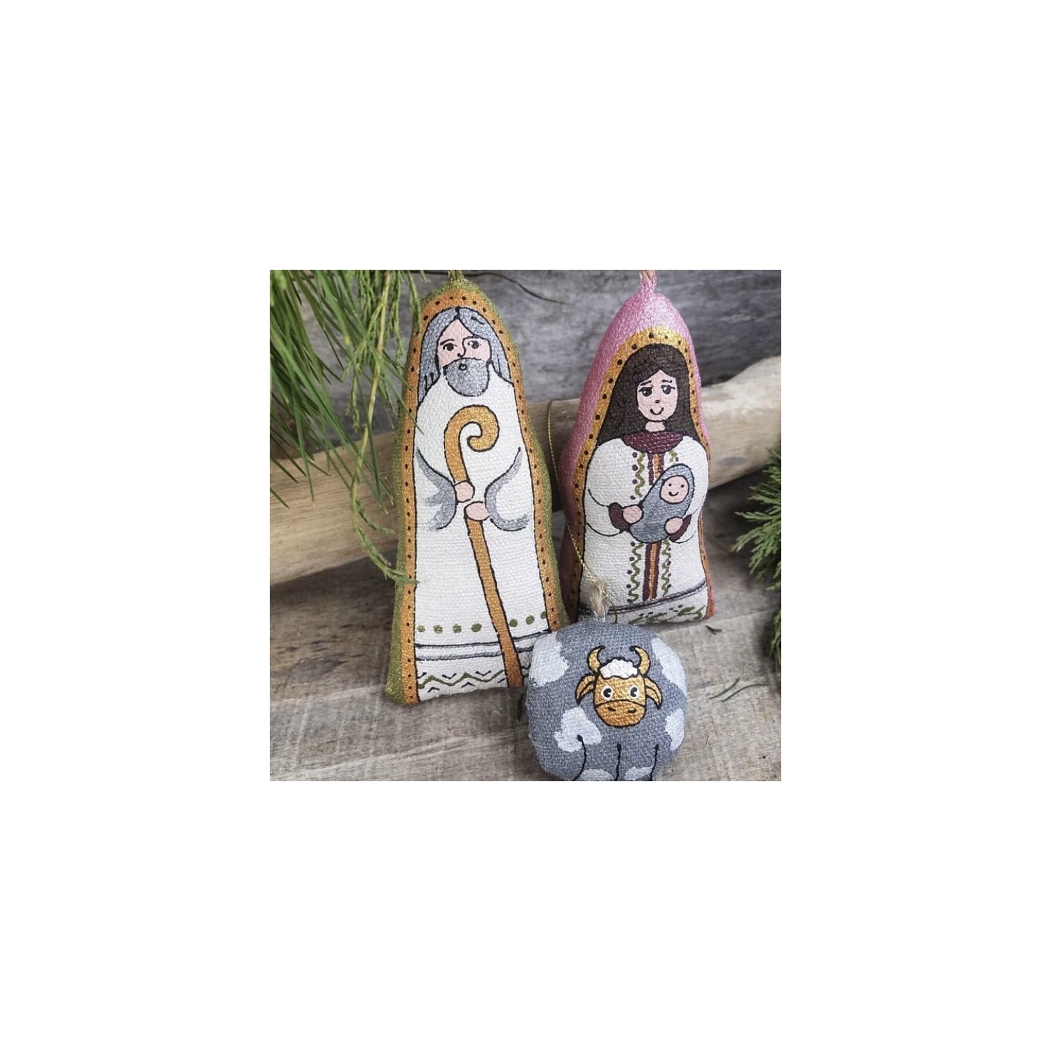 Sacra Famiglia fatta a mano in Ucraina, 3 pezzi.