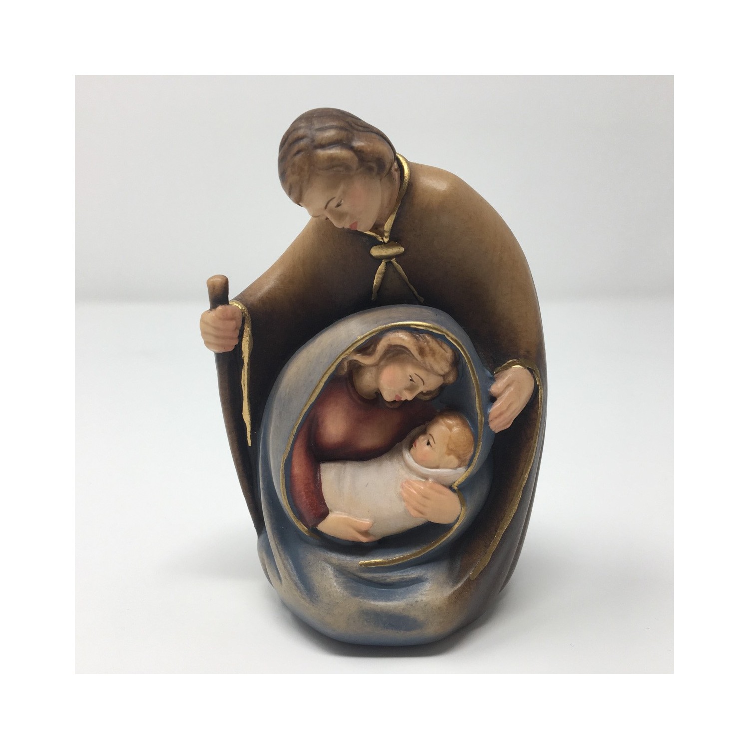 Natività gruppo in legno di acero scolpito e dipinto a mano in val Gardena.