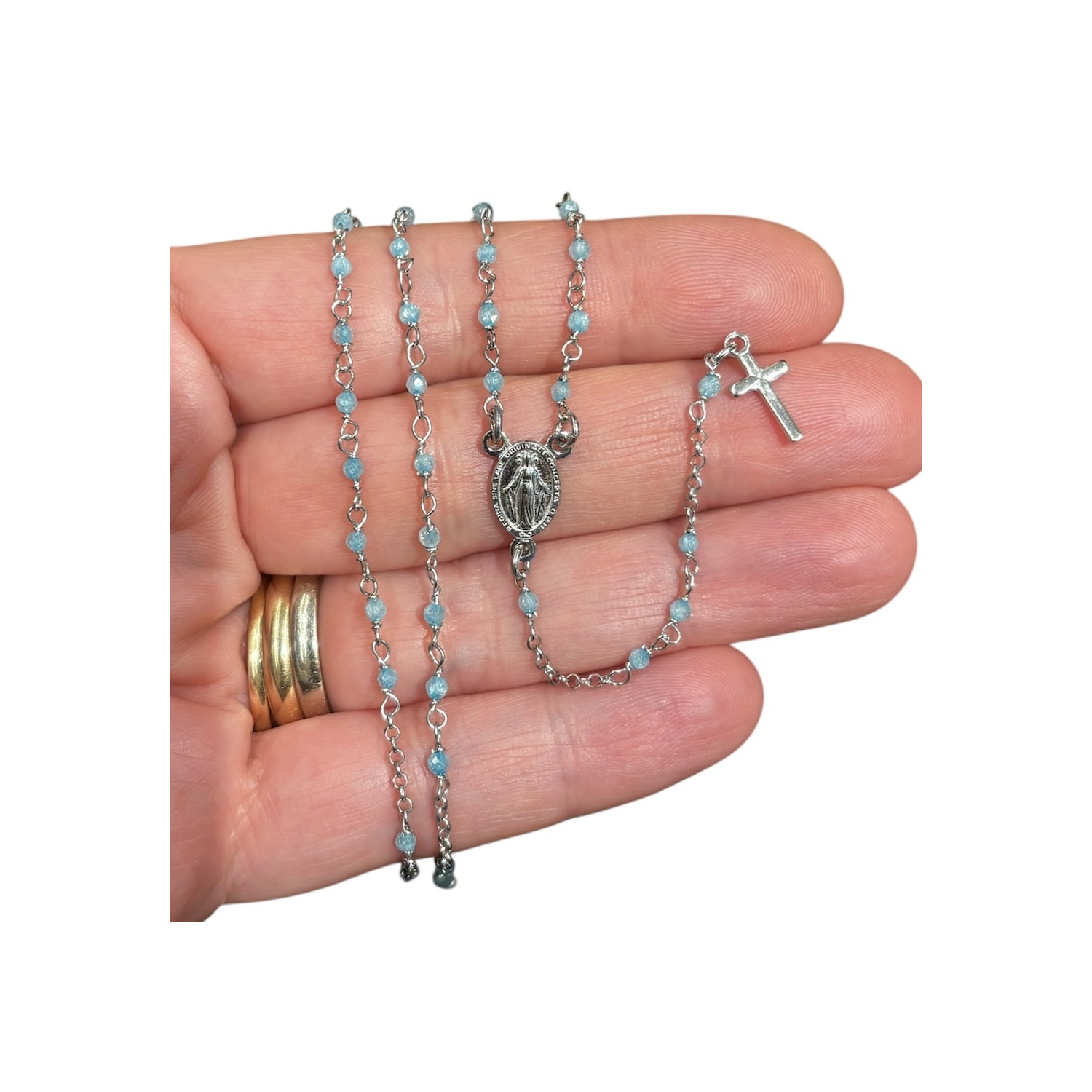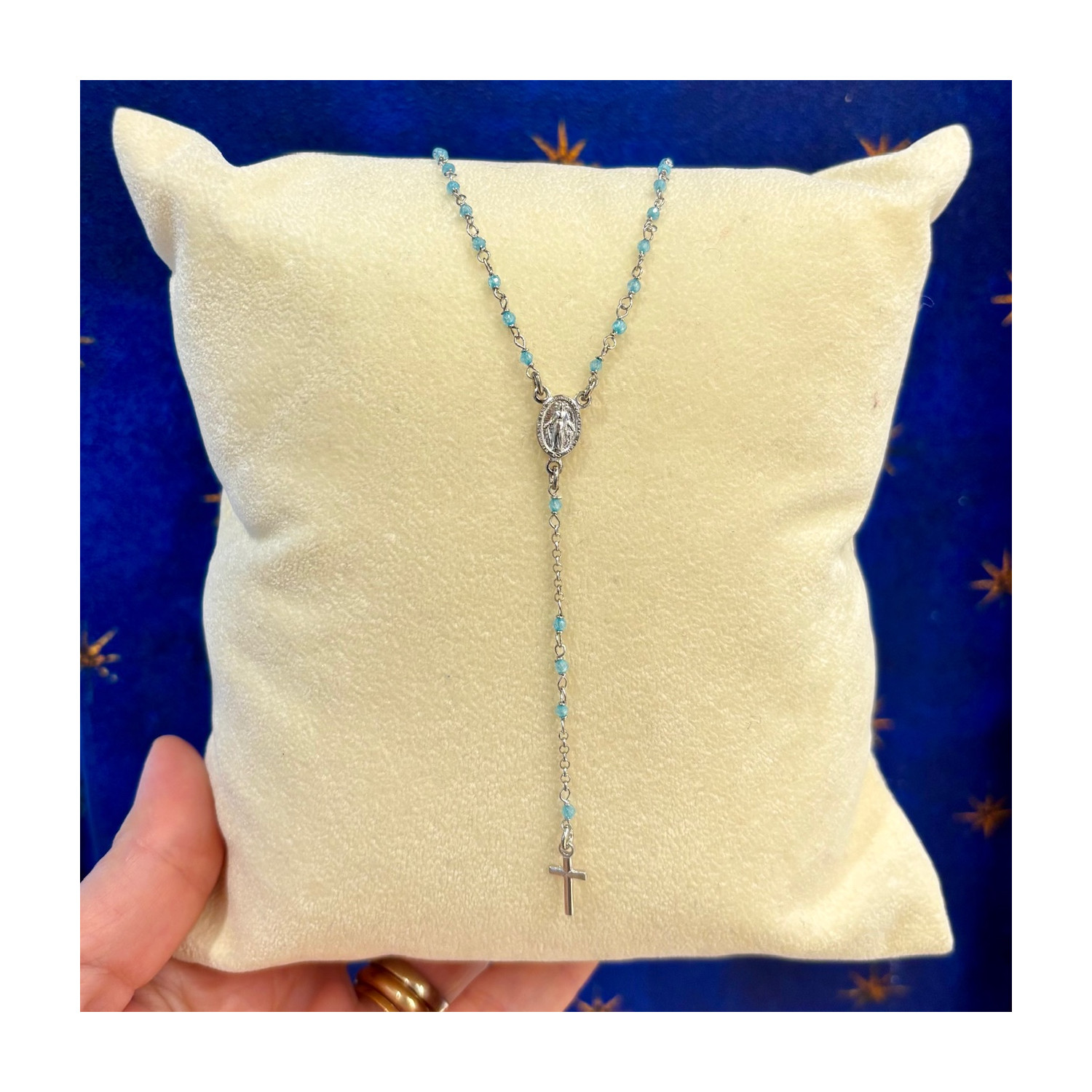 Rosario con gancio per essere indossato in argento 925 rodiato e cristallo.