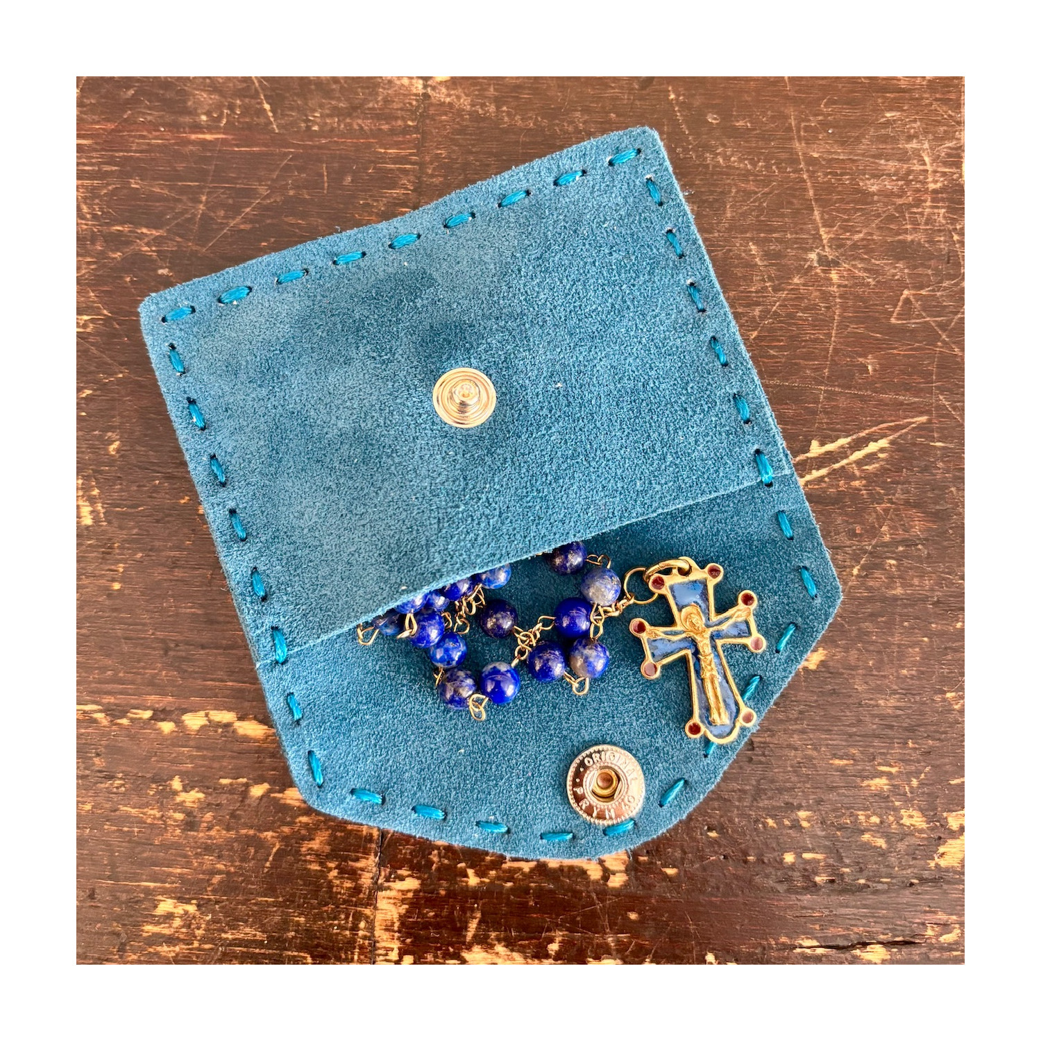 Bustina porta rosario in pelle scamosciata. Fatto a mano